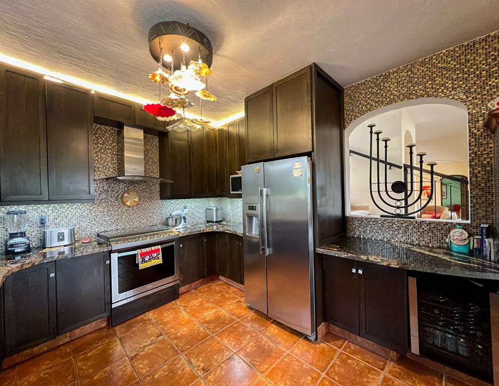 The sophisticated kitchen offers a modern and sophisticated design, perfectly complementing the cozy living room, designed to share unforgettable moments.