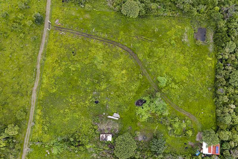 On the far right of the lot is a small house, of simple but functional construction, designed as a rural refuge or rest home. The house has a solid structure, firm walls and a practical layout that includes a multifunctional main space, a cozy room and a kitchen-dining area. It has a septic tank and the electricity supply is provided by solar panels. Its modest dimensions make it easy to maintain, while making it perfect for weekend getaways, temporary stays or as a base while a larger project is being developed on the ground. Natural light generously streams in through its windows, creating a warm and welcoming atmosphere.