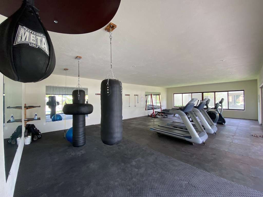 The Clubhouse has an indoor lounging area, a fully equipped kitchen, and a fireplace.