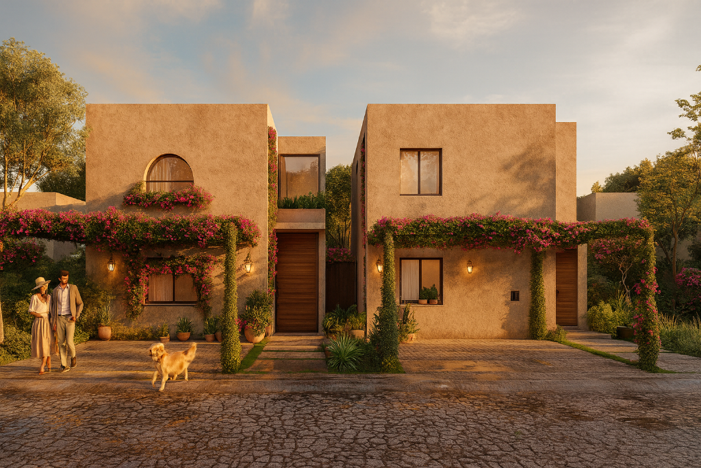 Strategically located just minutes from essential services, schools, and main roadways, the development blends traditional Mexican character with contemporary planning.