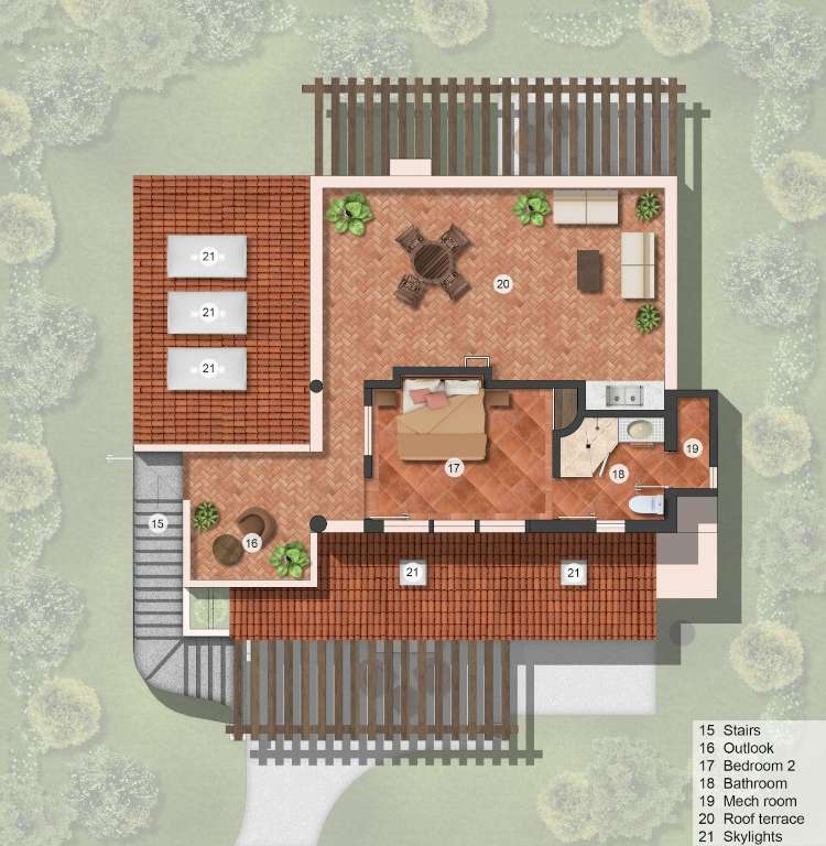 • Integrated living, dining, and terrace areas with handcrafted brick vaulted ceilings