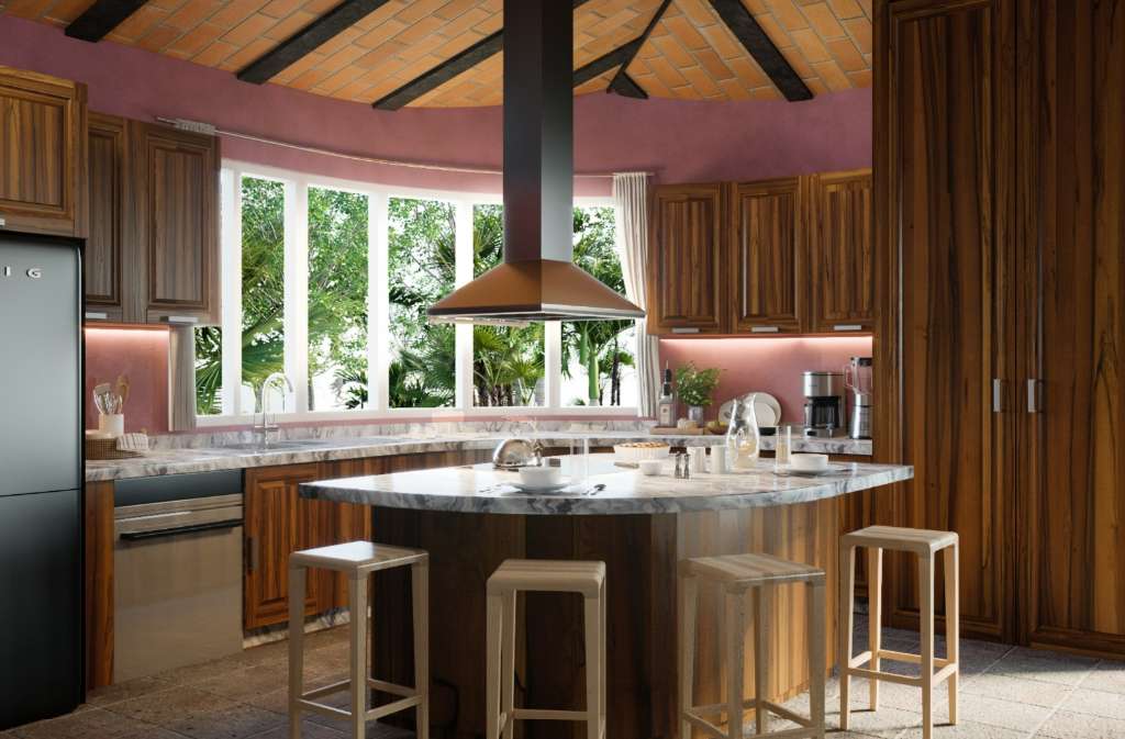 • Integrated living, dining, and terrace areas with handcrafted brick vaulted ceilings