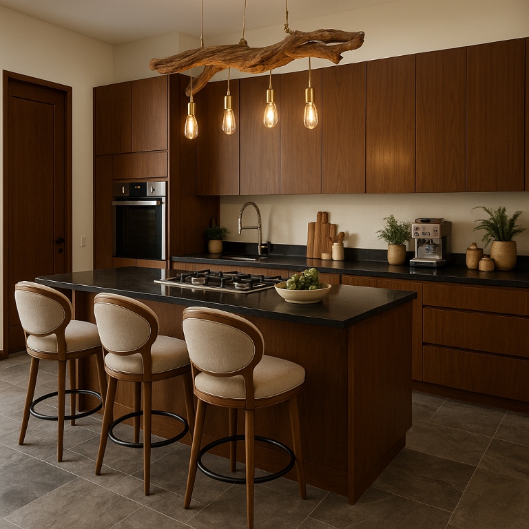 Floor-to-ceiling and wall-to-wall windows frame tranquil views of a majestic 150-year-old Indian Laurel tree, filling the residence with natural light and a strong connection to the surrounding landscape. The thoughtfully designed open-concept great room seamlessly integrates the kitchen, dining, and living areas—ideal for entertaining or relaxed everyday living.