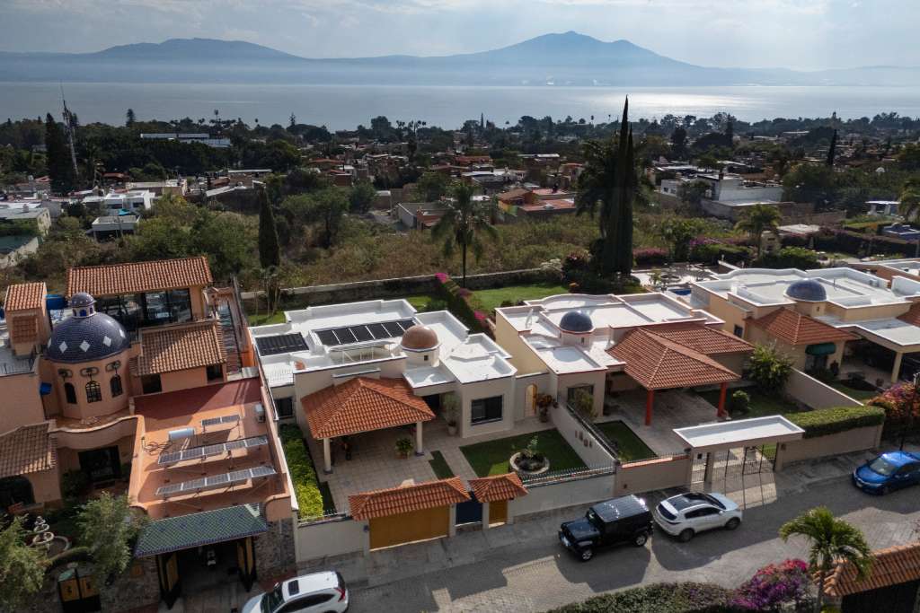 Hermosa casa de una sola planta con vistas al lago y piscina, ubicada en el corazĂłn de la colonia El Palmar, entre otras casas de lujo. El Palmar es reconocido como un barrio excepcional en el centro de Ajijic por su ubicaciĂłn y la calidad de sus casas alemanas.