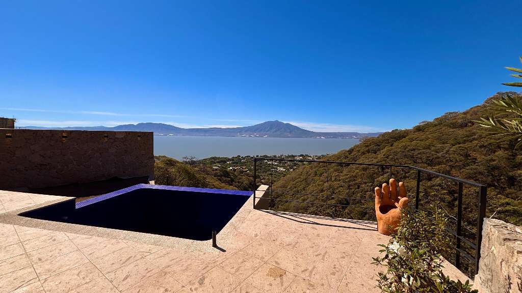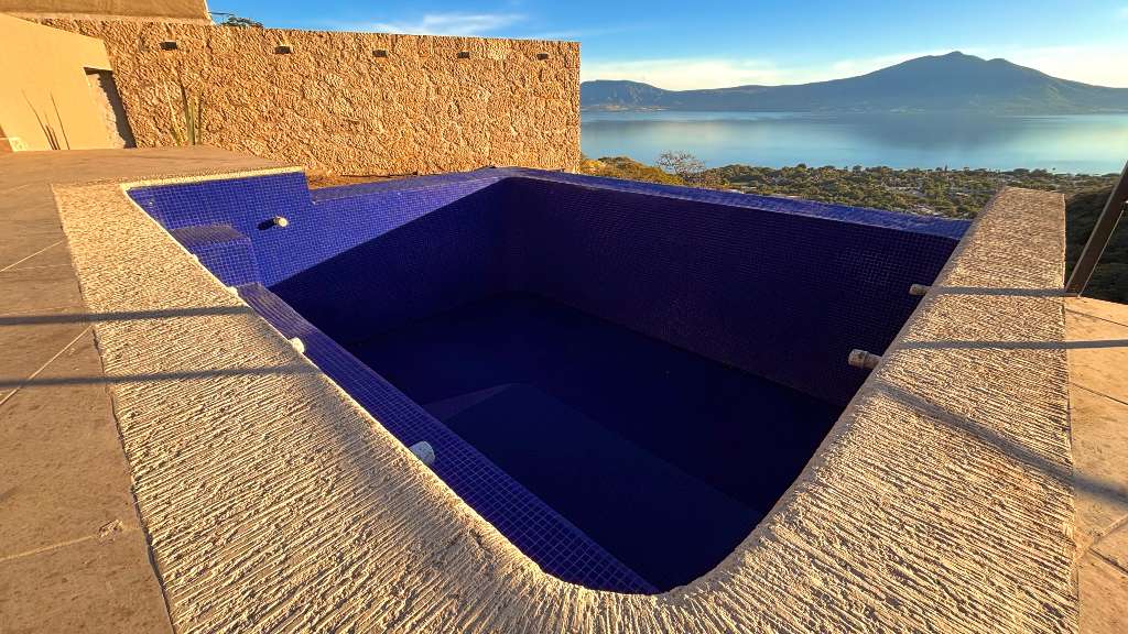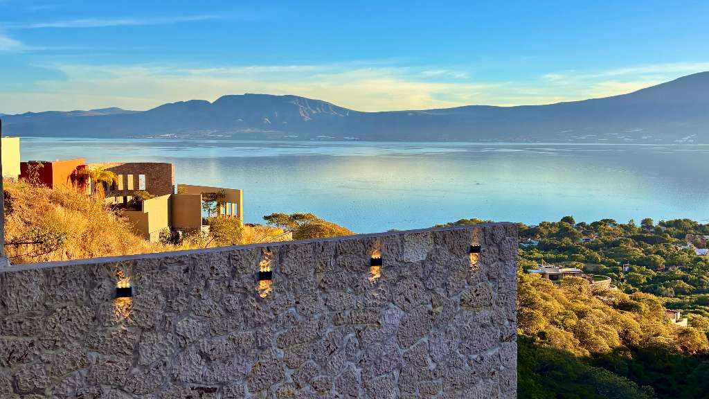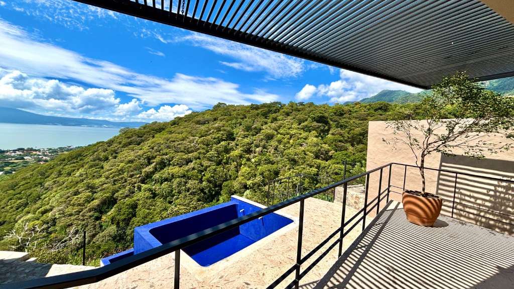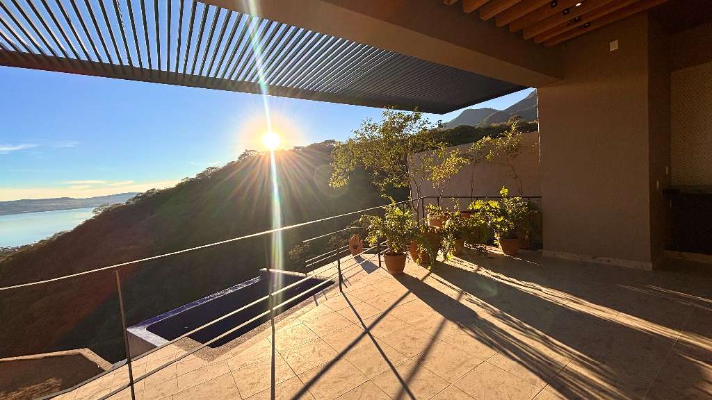 The heart of the home is an open double-height space where the kitchen, living room, and dining area merge with the main terrace, creating a perfect indoor-outdoor experience. From the infinity pool and jacuzzi, sunsets turn into a natural spectacle that fuses sky, mountains, and lake.