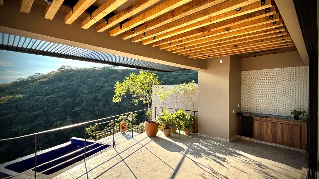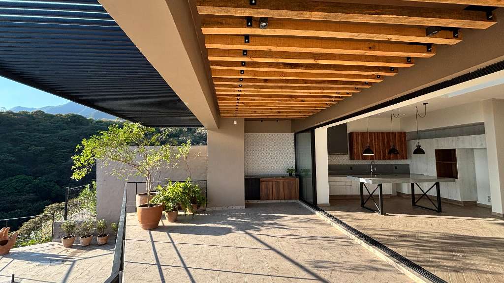 On the main floor, there is a bedroom with direct access to the social areas, while the upper level features two additional bedrooms, each with a private terrace and majestic views. All bedrooms are designed to provide comfort and privacy; two of them include finely equipped walk-in closets, thoughtfully designed to maintain elegance and order.