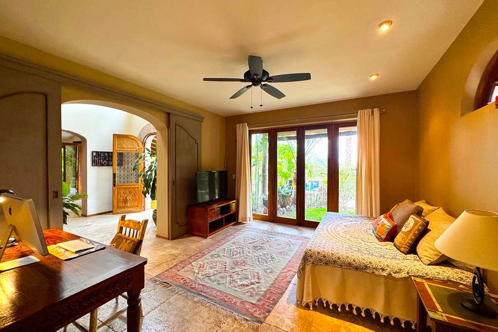 The impressive outdoor terrace extends along the length of the house, creating a perfect place to entertain or relax while enjoying the natural surroundings. This versatile space can easily be transformed into a spacious additional bedroom or a completely independent guest casita—ideal for visitors or rental income.