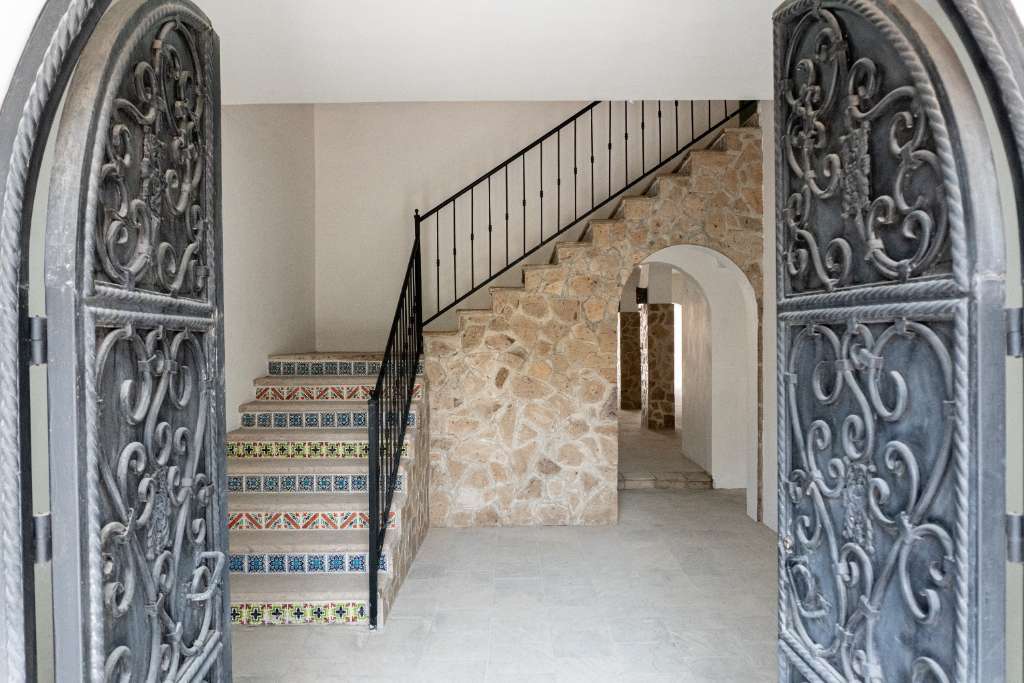 * Elegant Foyer: Welcoming entryway featuring handcrafted cantera stone and artisan tile accents.