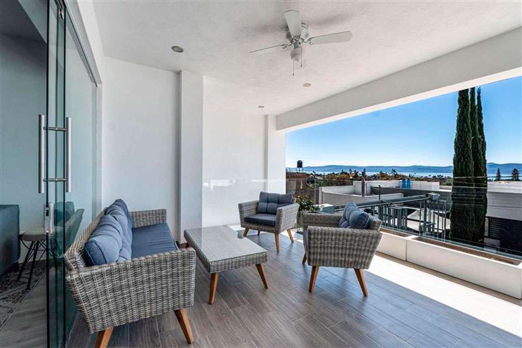 En el tercer nivel se ubican tres recámaras, cada una con baño completo y amplios armarios. Una de las recámaras ofrece una hermosa vista directa al lago, mientras que las otras dos presentan un concepto abierto con vista hacia la terraza interior, aportando luminosidad y sensación de amplitud.