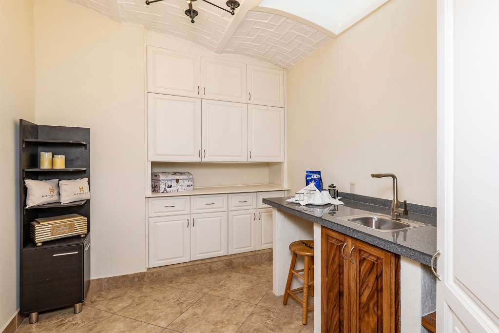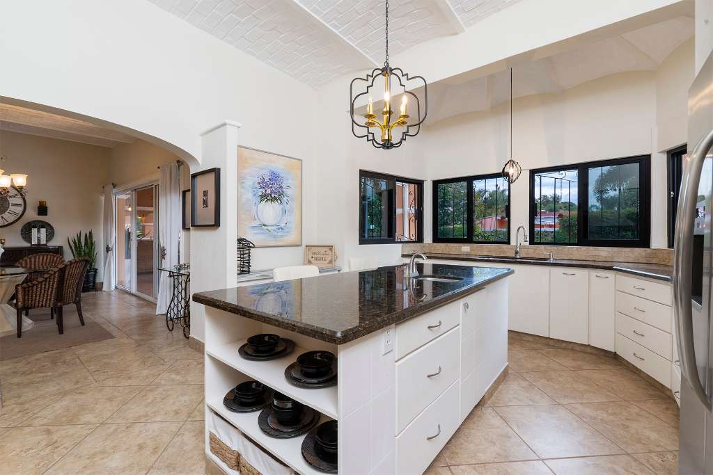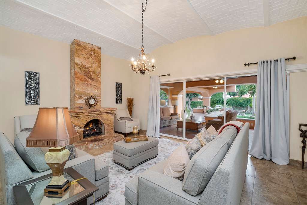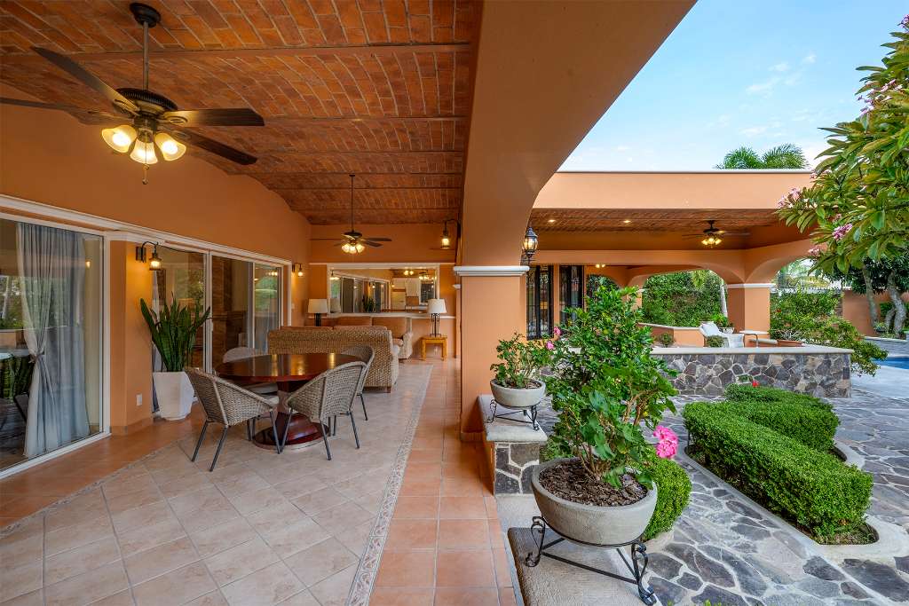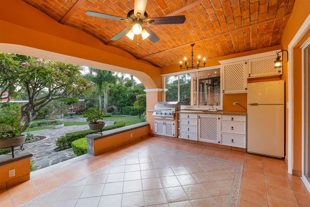 This home is made for entertainment! There is a great outdoor kitchen space with grill, sink, and full size fridge. Huge terraces wrap around the back of the house providing shade and lots of space for tables and seating and even your hammock. The heated pool has a waterfall feature and is delicious during the warmer weather.