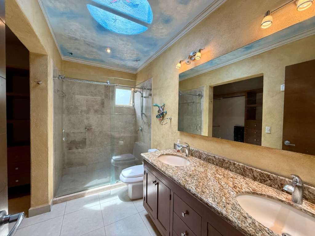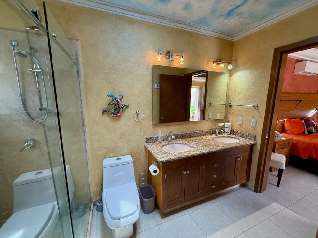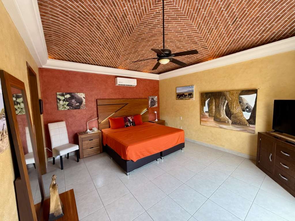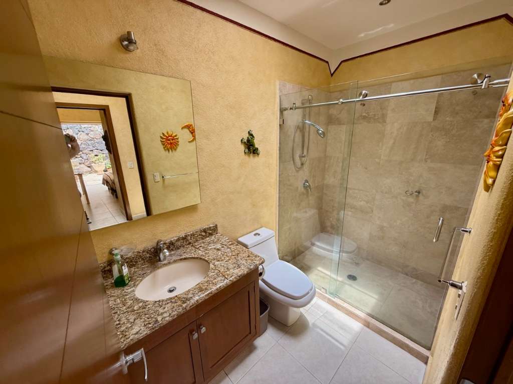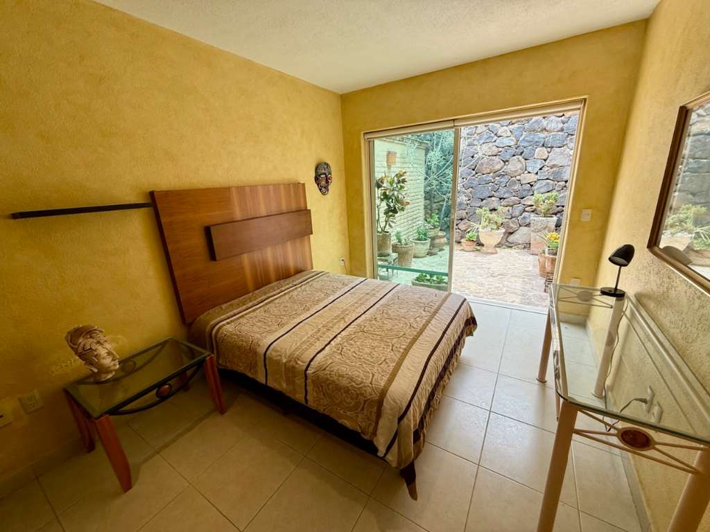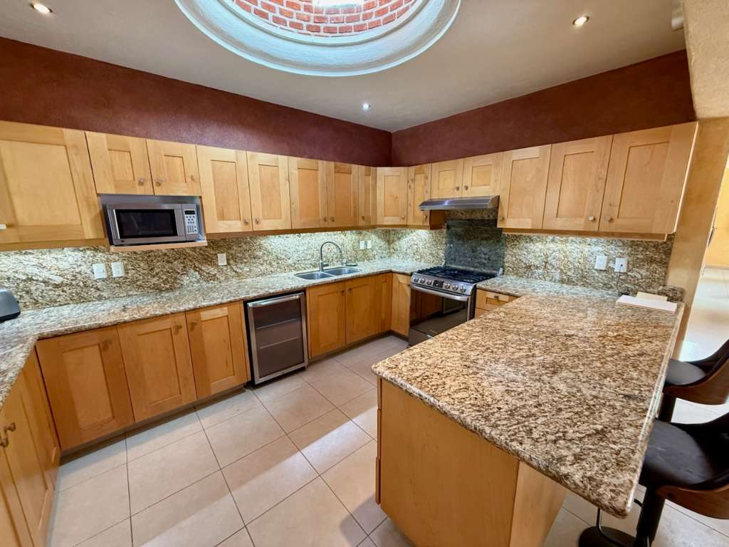 Private gated community called “Los Sabinos” located on the west side of Ajijic with only a short walk to shopping at Panchos Deli West and the Tuesday Organic Market. Plus, good eats at Brunos Steak House and Pasta Trenta. Fully furnished home in a charming layout with a central interior garden patio that divides this home into large main living area with the signature red brick cupola. And on the north side of this home the master bedroom with large en-suite and walk-in closet, plus a guest bedroom, bathroom and laundry area that looks on to a back courtyard. Large kitchen that looks onto the open concept floor plan and central garden patio. Lakeside’s best common area is a short walk and that area includes: large pool and heated jacuzzi that is warm all the time, large common kitchen, furnished living area and fire place, outdoor covered BBQ area, fully equipped gymnasium and his and her fully equipped bathrooms.