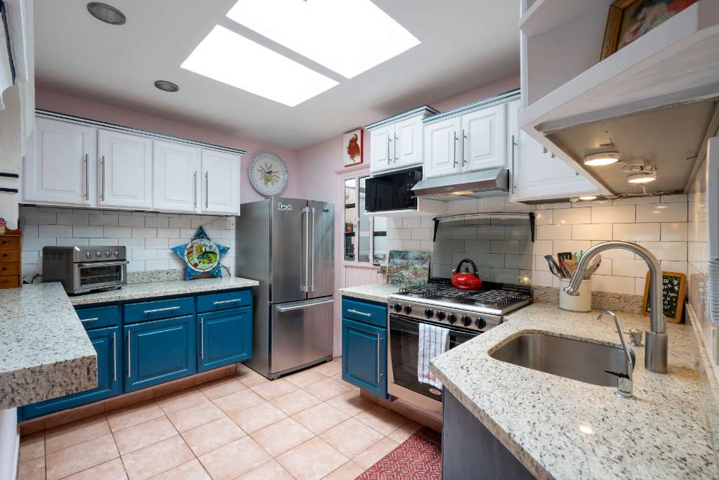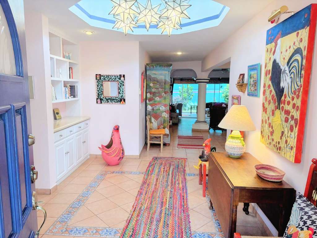 The home offers private, covered parking for one car, two storage bodegas, and a whole house voltage protector. The water filtration system includes reverse osmosis, along with hot water on demand. Besides a few heirloom pieces, the home comes fully furnished.