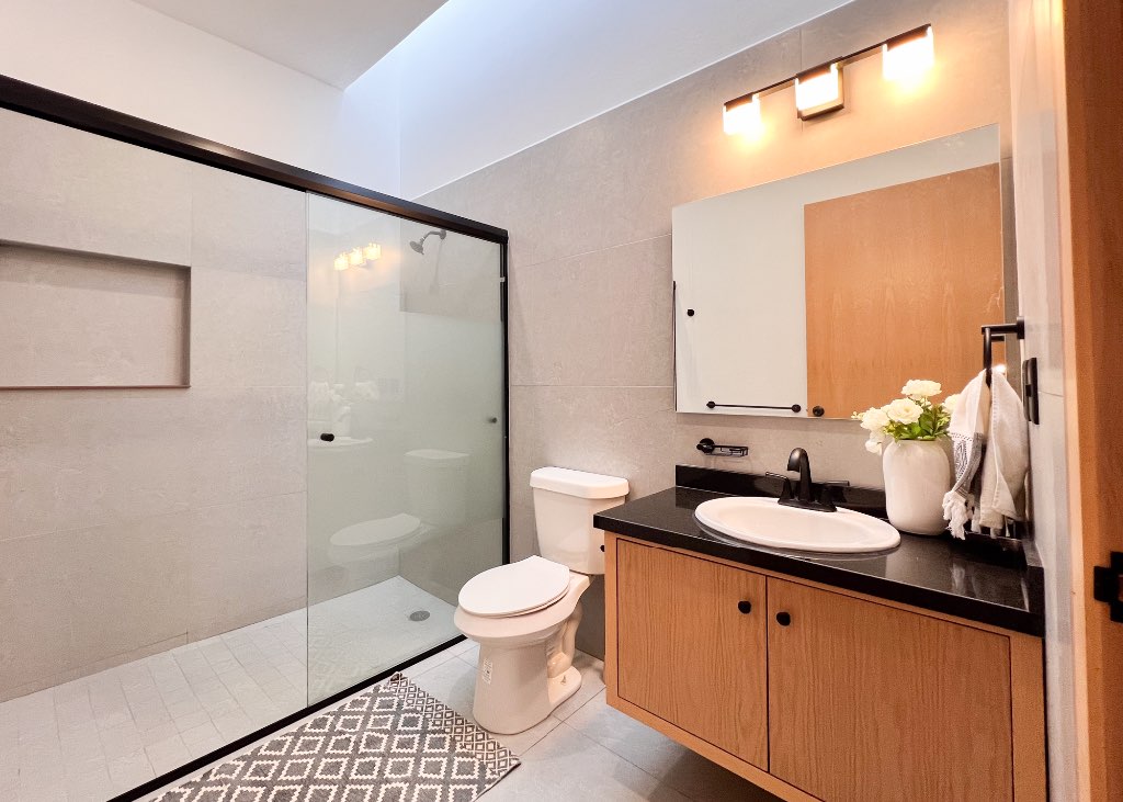 This charming single-level, two-bedroom home combines Mexican character with modern comfort. Its thoughtful layout features wide hallways and doors, making it fully wheelchair accessible and easy to move through. At the heart of the home lies a sunlit central patio, bringing in natural light and fresh breeze to every room — the true heart of Corazón de Oro.