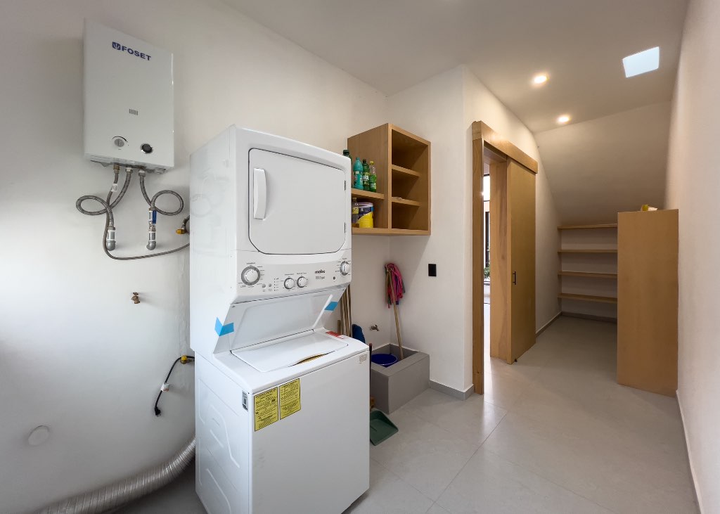 The bóveda ceilings in the bedrooms add warmth and craftsmanship, while the spacious kitchen is perfect for cooking and entertaining, with a convenient laundry room just steps away.