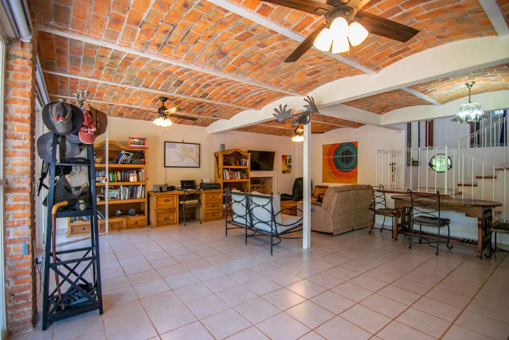 Upon entering the home, you’re immediately welcomed into the enormous, light-filled great room, featuring boveda ceilings, a cozy corner fireplace and leading out to the view terrace overlooking a charming arroyo. More than just a beautiful view, the arroyo can never be developed, and guarantees your neighbors will always be trees.