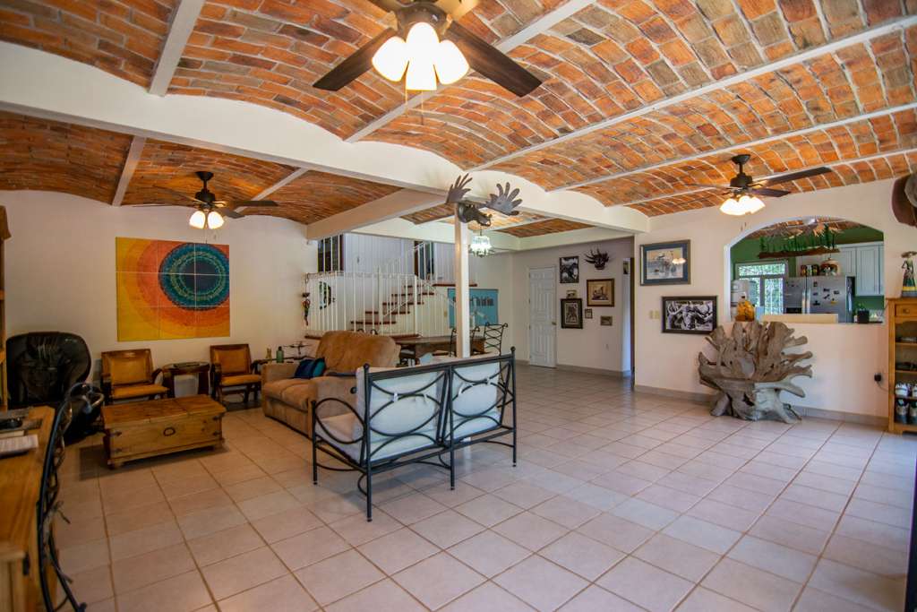 Al entrar a la casa, eres recibido de inmediato en una enorme y luminosa sala principal, con techos de bóveda, una acogedora chimenea en la esquina y salida a una terraza con vista hacia un encantador arroyo. Más que solo bonito, el arroyo es intocable para desarrollos, lo que garantiza que tus únicos vecinos serán siempre los árboles.