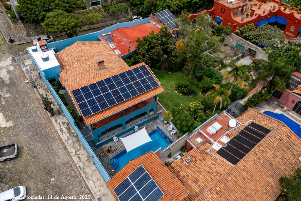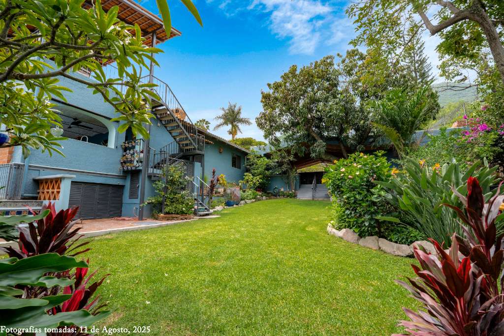 The home is situated on a spacious corner lot of 849 M2 with a large mature garden of fruit trees, has a separate studio casita, a 20 panel solar electric system with battery backup, an 18,000 liter water cistern and an environmentally responsible additional rain water catchment system. It is a peaceful oasis behind its compound walls and offers a rare environmentally sustainable lifestyle. It is oriented to the south and north allowing both lake and mountain views and breezes. The current owners have taken advantage of the fact it is located only one block from our new walking and bicycle path that runs the 50 miles from the Town of Chapala to the town of Jocotopec and installed E Bike storage and charging stations adjacent to their carport. .