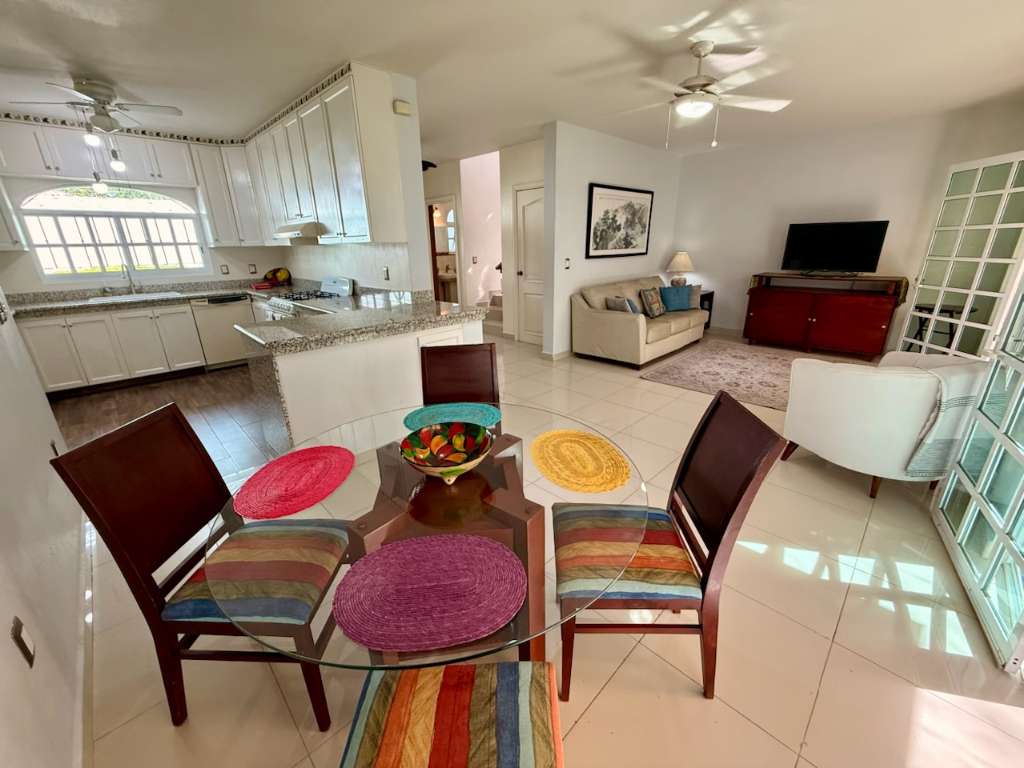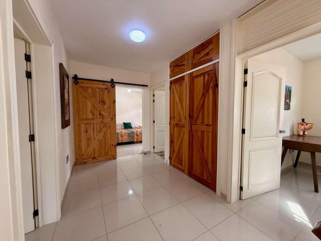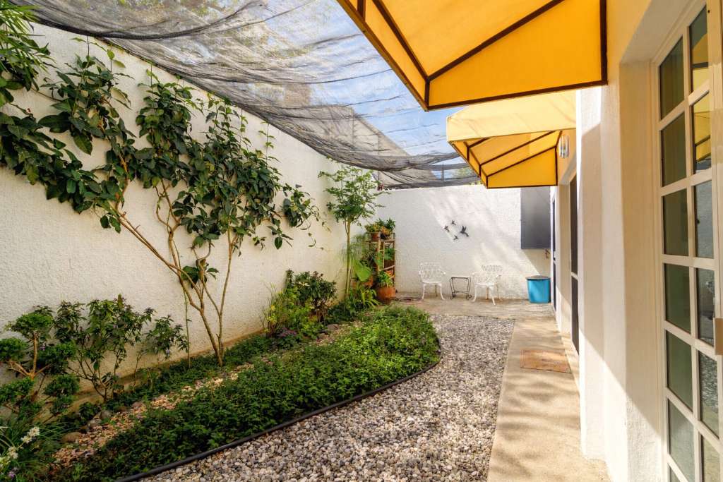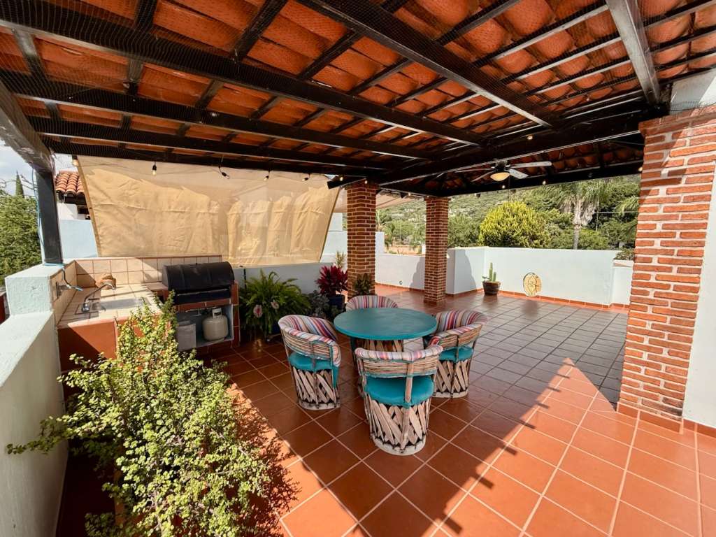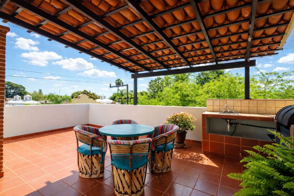 Spacious and modern lower-level floor plan that centers around French doors and windows leading to a landscaped garden and loads of natural light. Formal entry leads to living room, dining room, half bathroom and a bright designer kitchen and laundry room. Second level boasts all the 3 bedrooms; the air-conditioned master bedroom has a large walk-in closet and a well-appointed spa bathroom with bathtub. The 2 guest bedrooms share a common bathroom and one of the bedrooms has a large walk-in closet. Located in a small 4 home gated community with secure highwalls, common automatic gate, parking for one car and automated passcode pedestrian entry when you have visitors. Built in 2010 this charming three level home makes perfect use of all its more than 2100 square feet. Third level has a spectacular mountain view with a covered roof top mirador, built-in countertop with BBQ and a solar hot water system. This home is walking distance to many top-notch restaurants, comes fully furnished, would make a great Airbnb, long-term rental and can be deeded instantly.