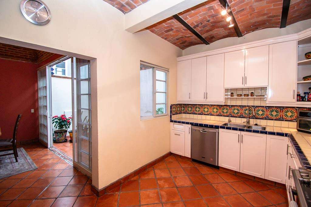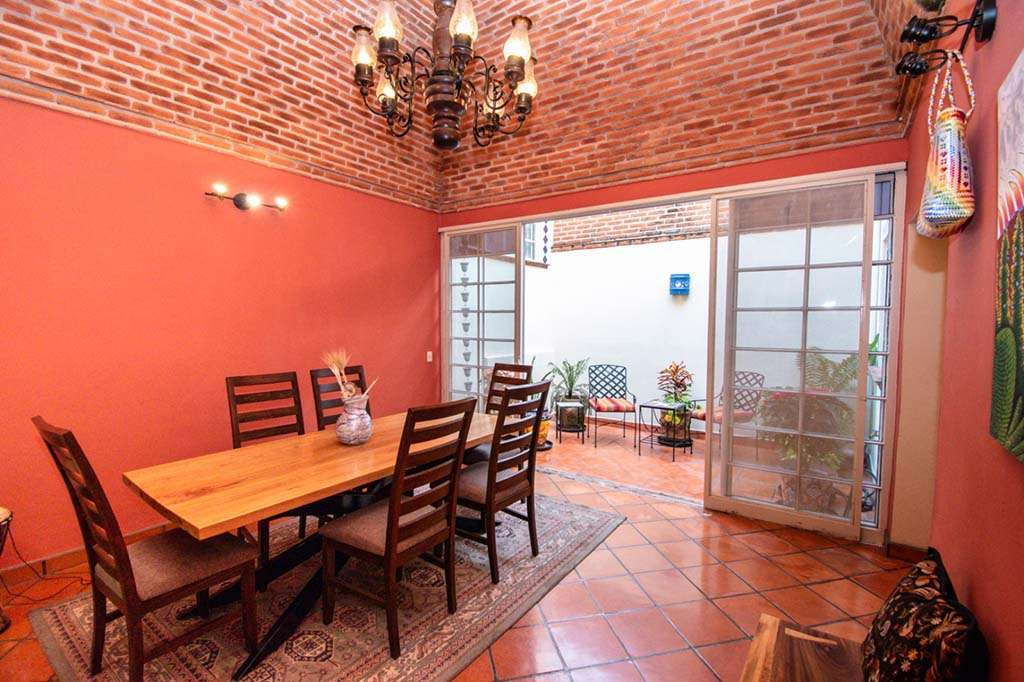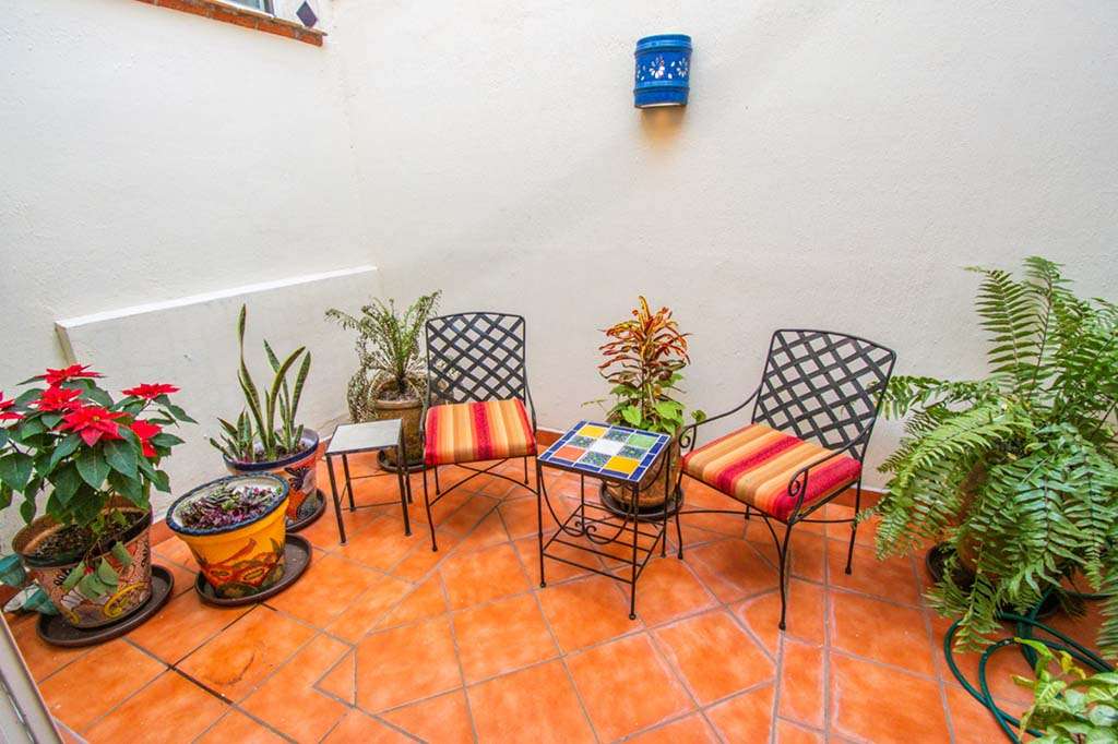 Adjacent to the dining room is a cozy, light-filled patio enclosed by high walls. It's ideal for enjoying morning coffee, potted plants, or a cozy reading nook. Talavera tiles and decorative ceramics enhance the space's Mexican character.