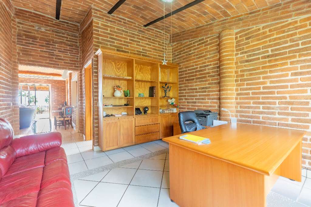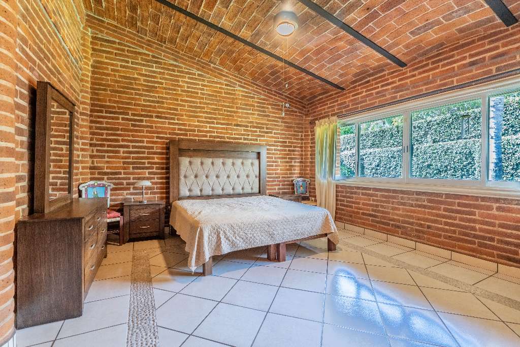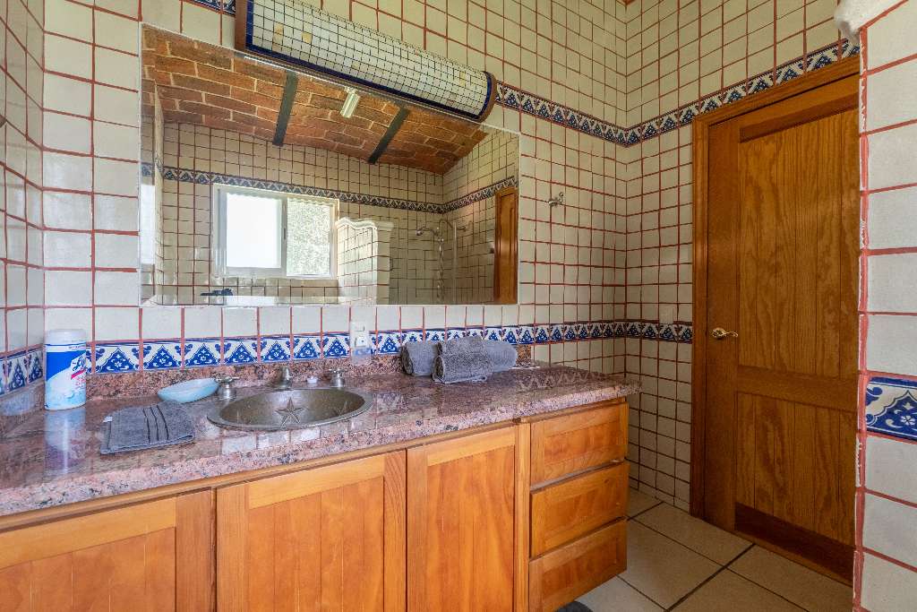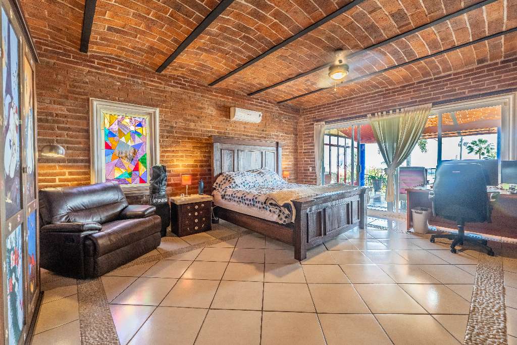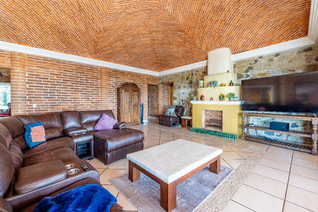 This property blends rustic charm with modern Mexican style. Inside, you’ll find brick walls, a boveda ceiling in the living room, and a cozy fireplace for those perfect evenings.