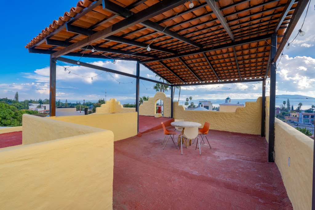 Upstairs, the home features a spacious primary suite with lake views, along with a third bedroom that can also be used as a home office. The rooftop mirador provides beautiful panoramic views of the lake and surrounding mountains.
