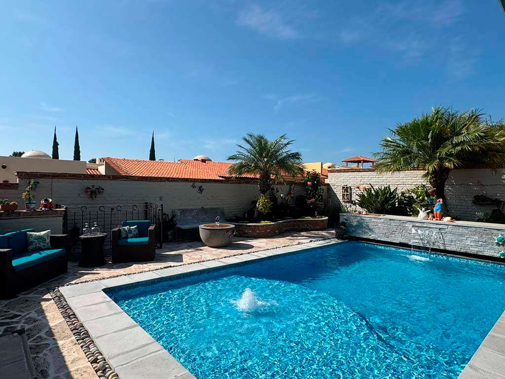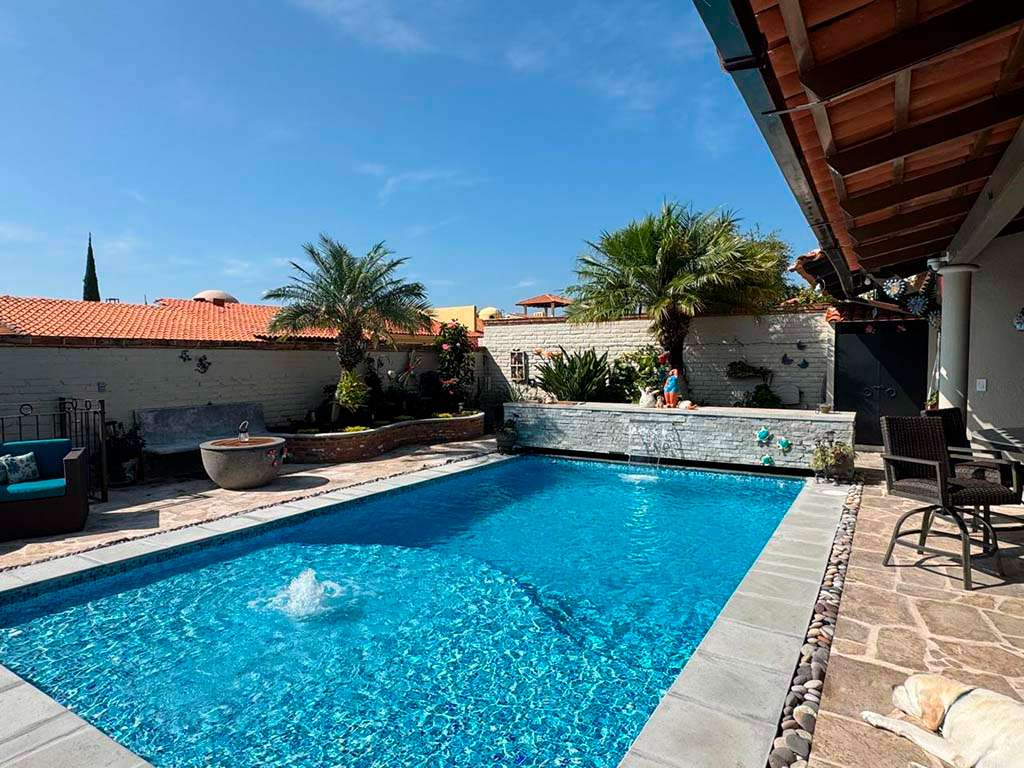 The woodwork has been redone or repainted with beautiful colors. The private pool has been retiled and reconfigured and converted to a salt water system and includes solar passive panels, a fountain, bubbler, LED lights and new tile.