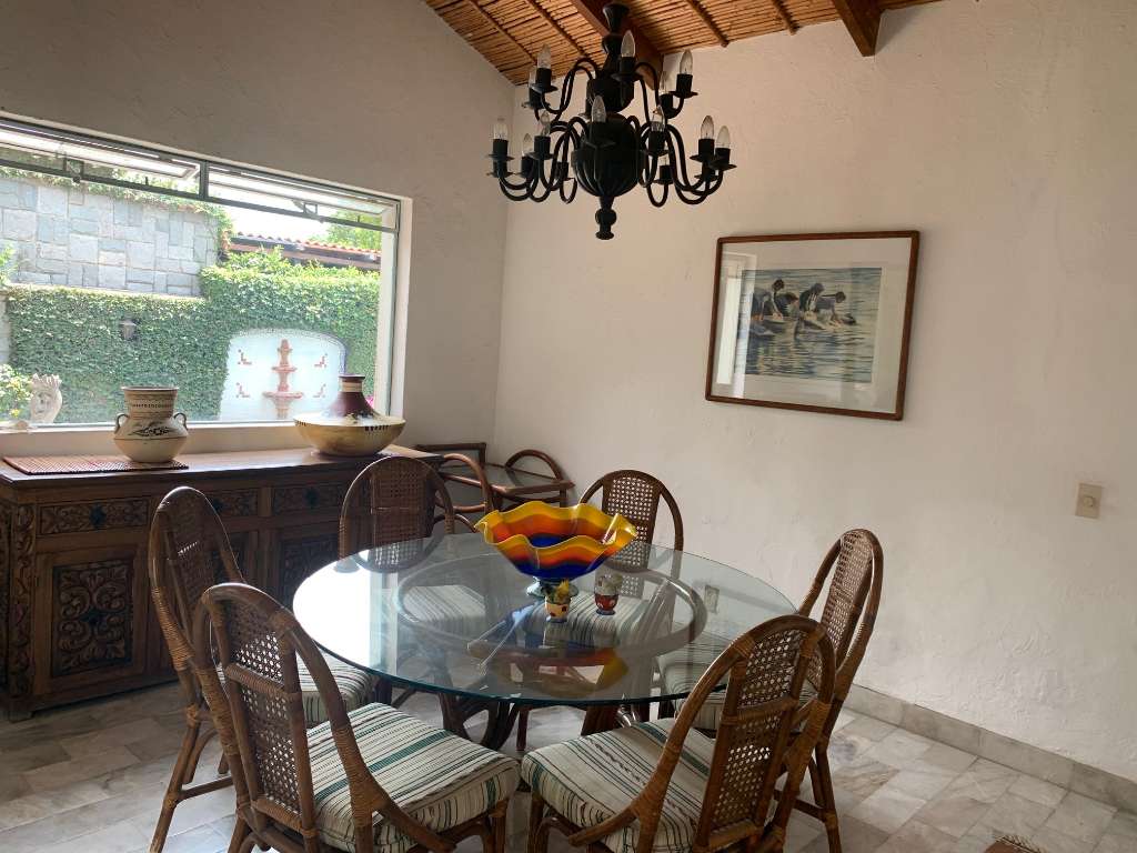 Best location in Ajijic Down Town just 3-4 blocks walking at Ajijic Plaza, 2 blocks walking at the ajijic Malecon, fully furnished, main area with 1 large bedroom, 1 bathroom, kliving room, dining room & kitchen. Two separate bedrooms with a full bathroom each, covered terraza, pool and very nice area full of beatifoul flowers pots. Available March 15th, 2026.