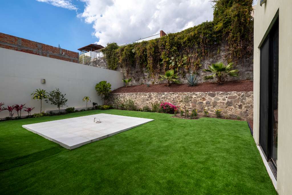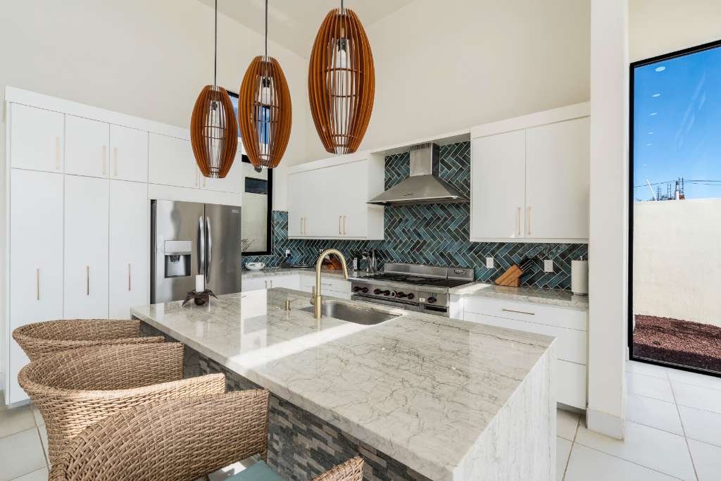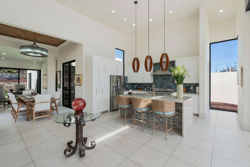 Built in 2022, the property features tasteful contemporary design and high ceilings that create a bright, open feel throughout. The landscaping includes synthetic grass, keeping maintenance costs to a minimum while maintaining a clean, lush look.