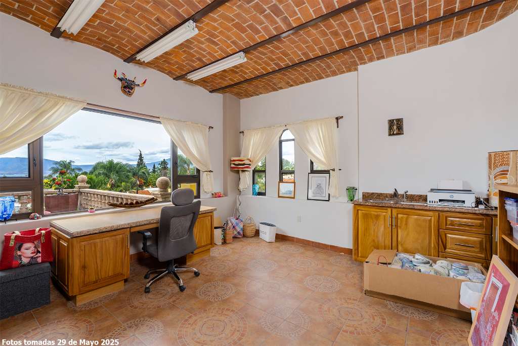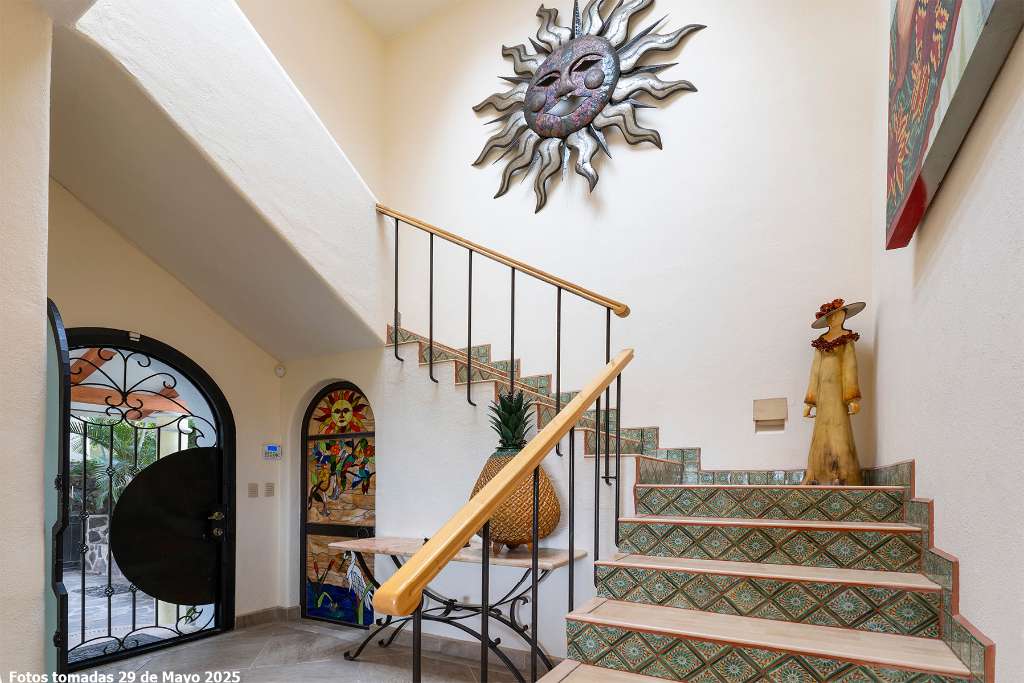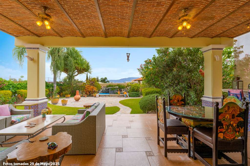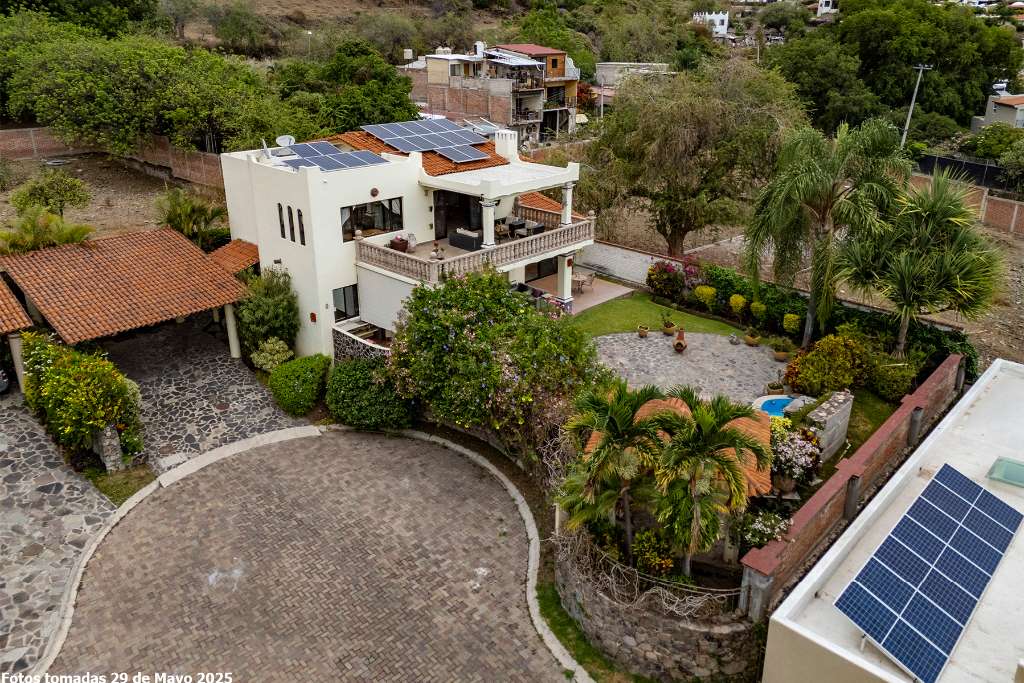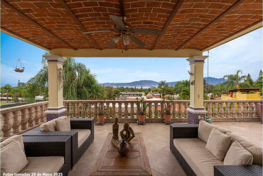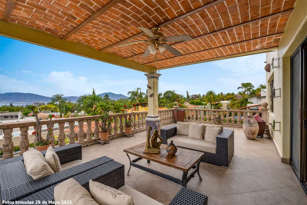 Luisa is unique in our local Real Estate world. Located in a secluded but accessible corner of Ajijic village in a small gated compound the home is elevated into its own sanctuary. The property has the large private garden that so many buyers seek. It epitomizes our lakeside lifestyle of indoor and outdoor living. It has a spectacular second floor grand master but offers space to age in place on the lower suite, It is light and bright with a contemporary esthetic that is counter balanced with classic elements like Cantera stone balustrades and Talavera tilework on classic square pillars. The home has full solar electric, full water purification system including water softener, a garden sprinkler system and numerous storage bodegas on its gardener corridor. A prestige lake view home that meets the needs of the most discerning buyer