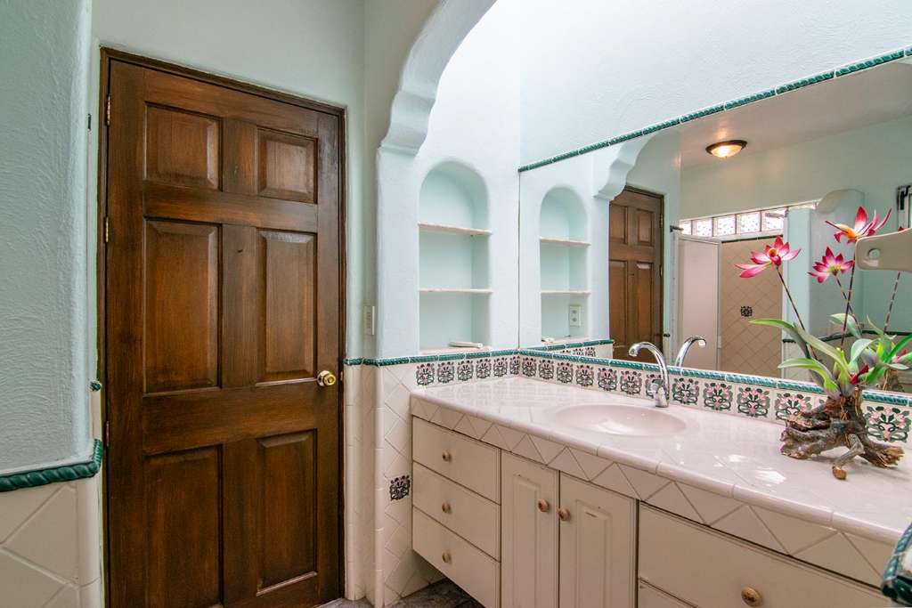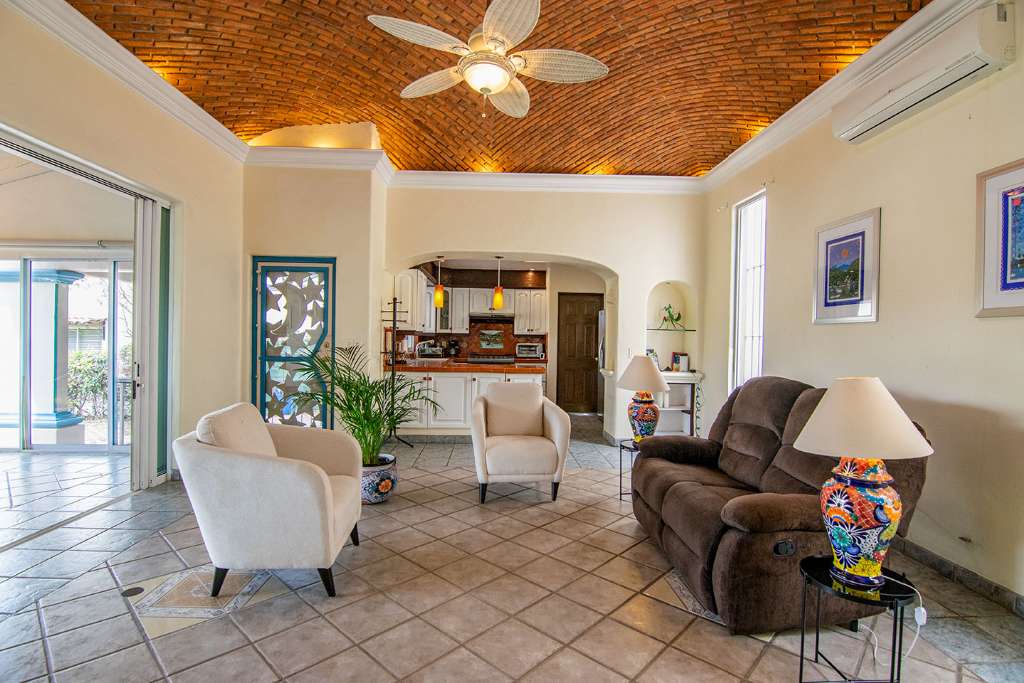 Nestled in the peaceful La Huerta neighborhood of Ajijic, this stunning home offers an idyllic retreat amidst nature's embrace. The well-lit interiors exude a sense of tranquility and comfort.