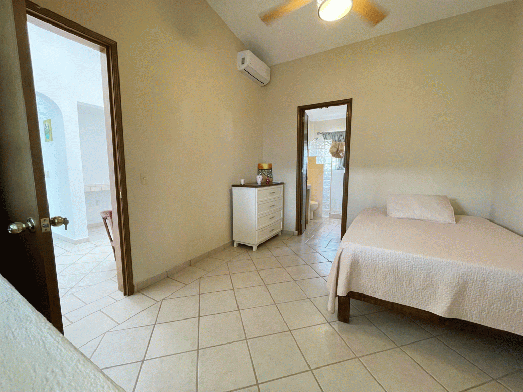 This home is located in Riberas del Pilar, offering excellent proximity to essential services such as gas stations, restaurants, convenience stores, hospitals, and more. The property features a covered garage suitable for two small vehicles, three bedrooms each with walk-in closets and full bathrooms, and a small garden at the back. One of the bedrooms is located on the main floor, providing added convenience.