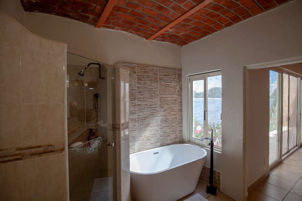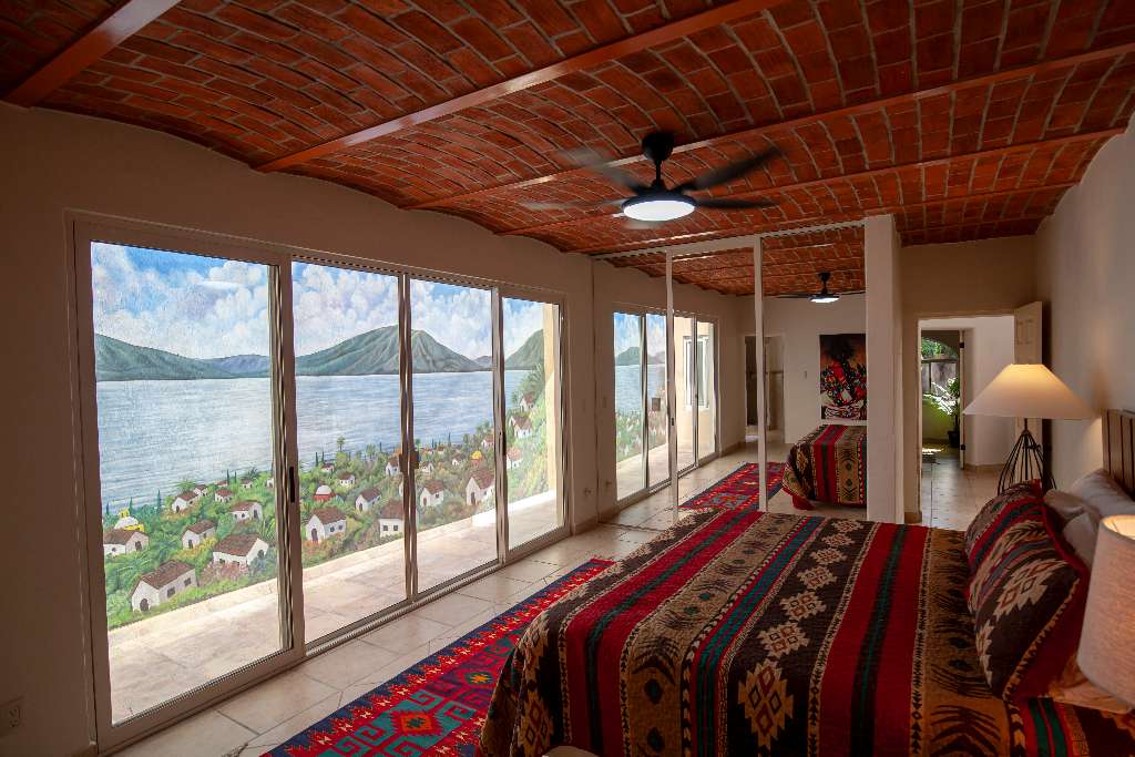 The principle bedroom features a view of the custom Mural of Lake Chapala centered on our well known Mount Garcia.