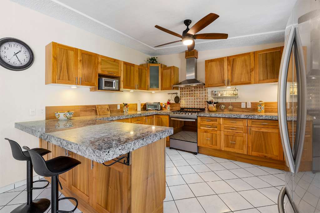 Step through the welcoming entryway, and to your right, discover the gourmet kitchen — the heart of this home. Crafted for those who love to cook and entertain, it features rich teak cabinetry, granite countertops, stainless steel appliances, and a sink mounted filtration system for drinking water. No more 20 litre bottles needed! Whether preparing a quick breakfast or a grand dinner, this kitchen combines form, function, and beauty in perfect harmony.
