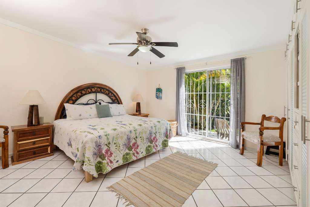 Back on the right side of the home, a few steps lead down to a second lounge and living area, where soft natural light pours through generous windows, creating a cozy space for conversation or quiet reflection. Adjacent lies the second master bedroom, equally inviting, offering tranquil privacy and garden views.