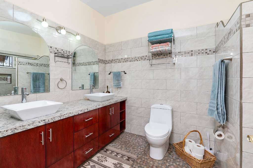 From the moment you arrive, you’ll feel the tranquility that defines Casa Serenidad. The property offers two convenient entrances and covered off-street generous parking spaces for two vehicles, ensuring both privacy and ease of access. A spacious garage with generous storage keeps everything organized and secure, reflecting the home’s well-planned design.