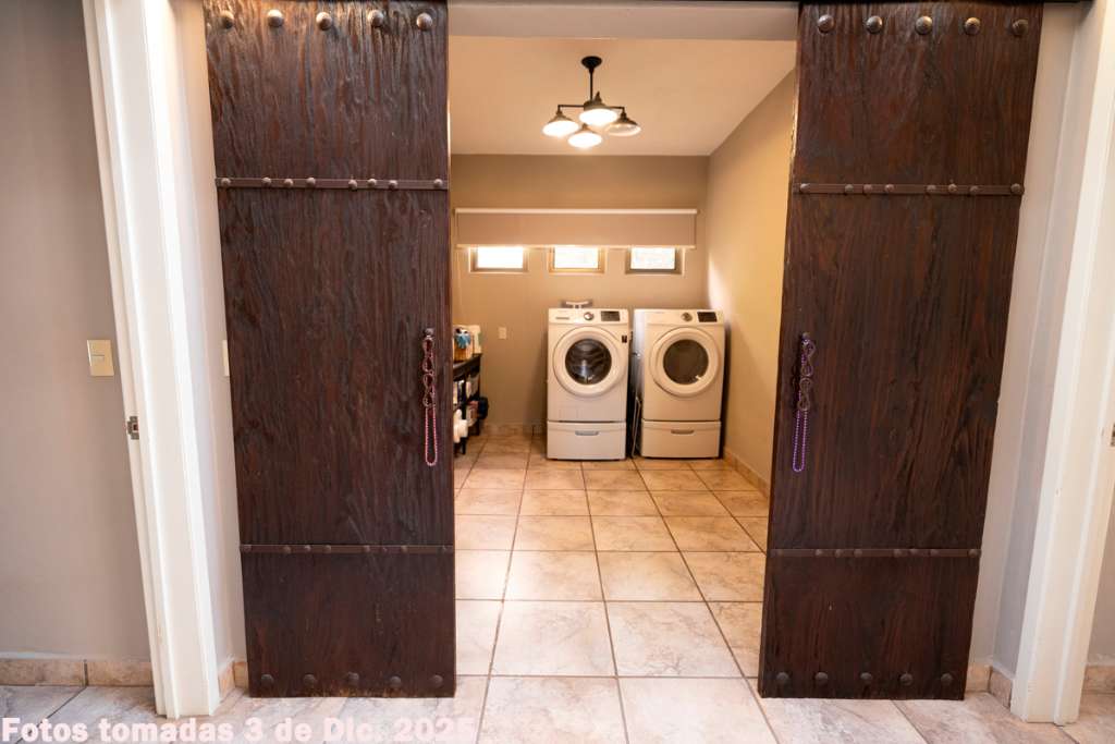 A large skylight floods natural light over the double sinks in the master bath - so you can actually see what you are doing! Two sets of sliding barn doors grace the bedroom and laundry adding even more character!