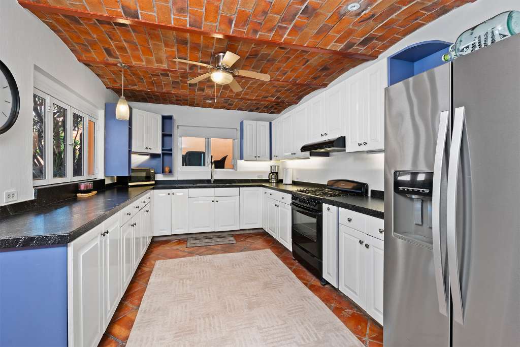 At the front of the property sits a spacious one-bedroom casita with its own private entrance, full size kitchen (a rarity for a casita), and bathroom — ideal for hosting guests, family, or generating monthly rental income. |