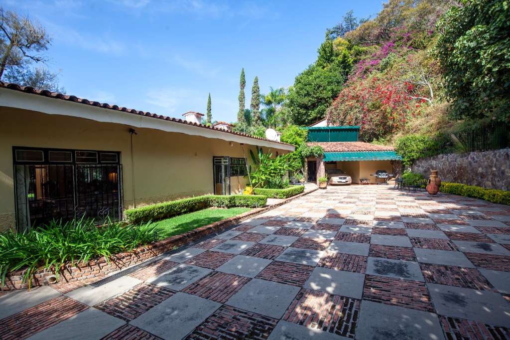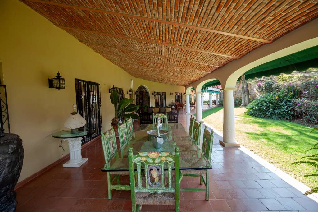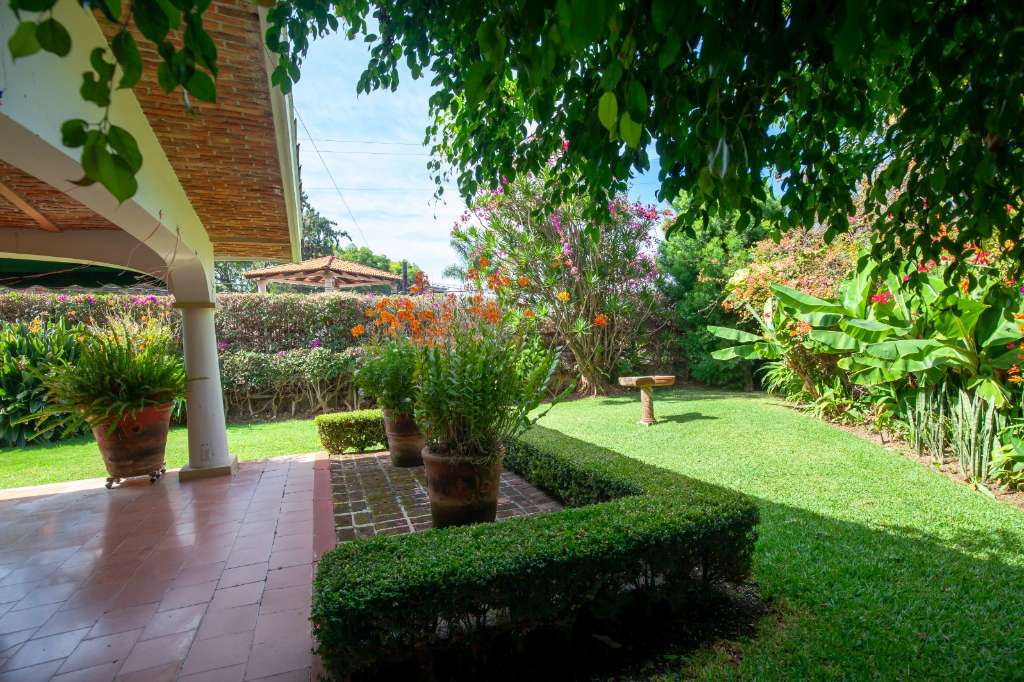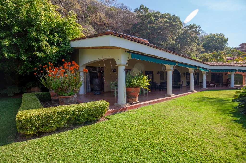 The main home features a sprawling covered terrace overlooking the South facing mature landscaped gardens.