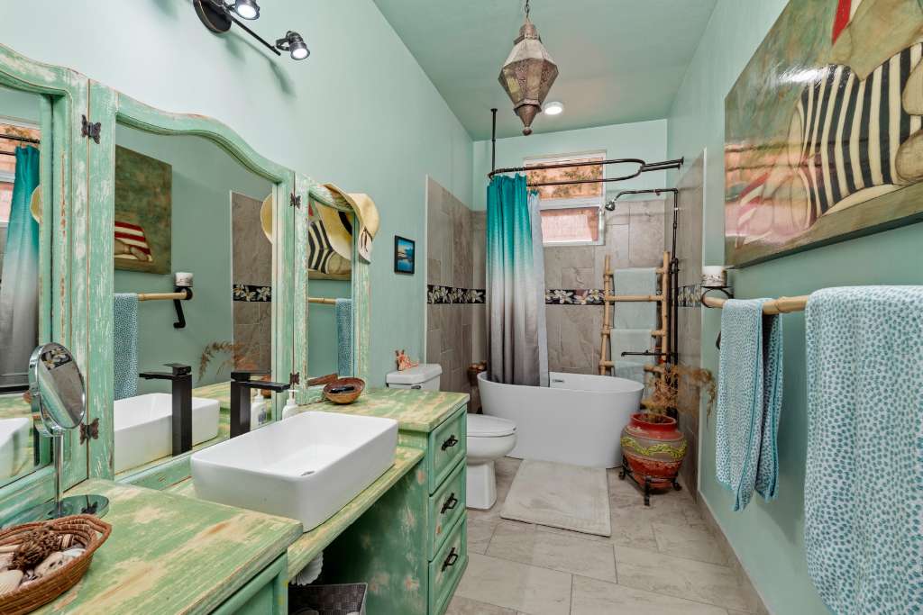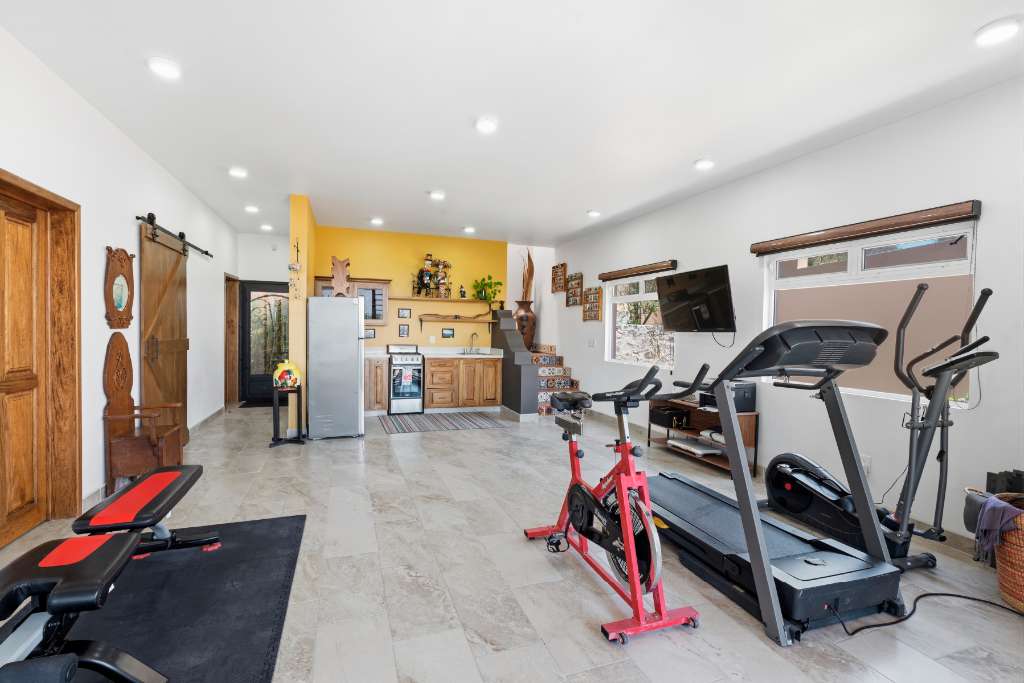 On the lower level is a separate living unit with its own kitchen, full bath with a tub, and 2 bedrooms. It is connected to the main living area by stairs but could easily be made into a separate living unit with an independent entrance for your own casita. It has a comfortable terrace for enjoying the weather and for observing the pool area.