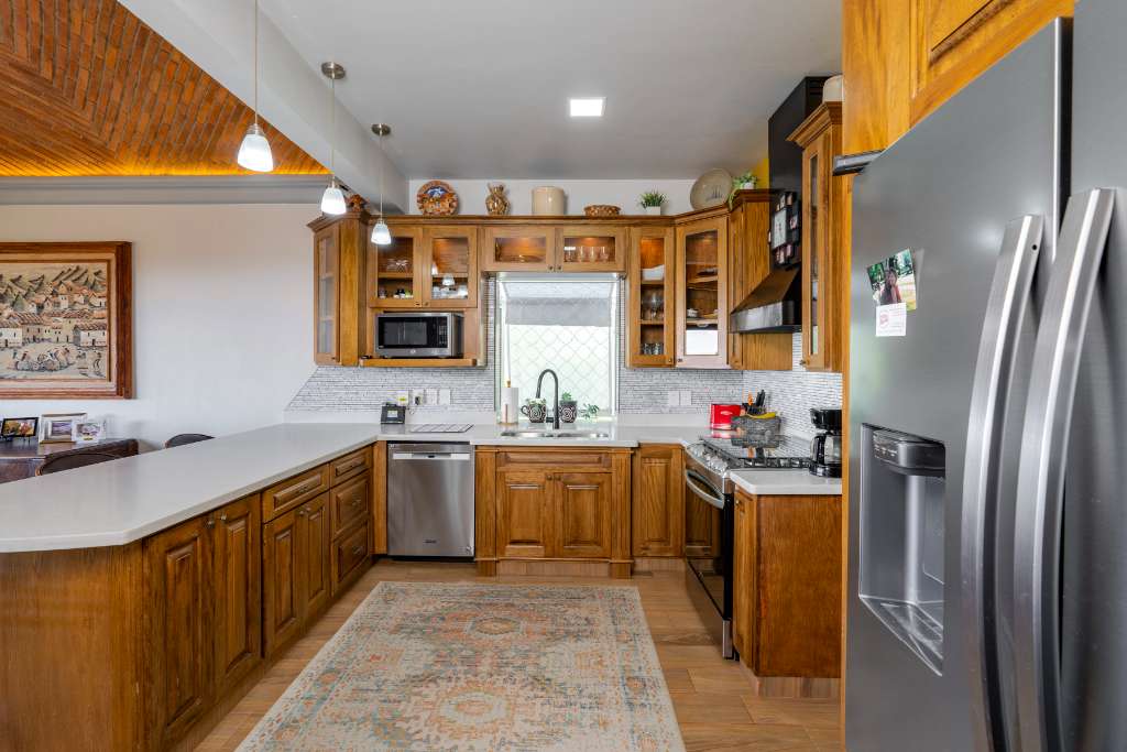 The pool is heated with solar heating panels and is warm for swimming all year round. A great way enjoy life and entertain friends and family. There are solar electric panels to ensure a lifetime of 'almost free' electricity. 2 car garage with electric gate. Lots of green space for pets to enjoy and for gardening. Quality rosewood carpentry throughout. Solar and on demand water heating units ensure an instant and constant flow of hot water. Water purification. High speed internet. Quiet corner lot. Low fees ($1,300 pesos / month) include water and garbage collection. Furniture package available. Home built in 2021. Upgraded appliances. Make your appointment today!