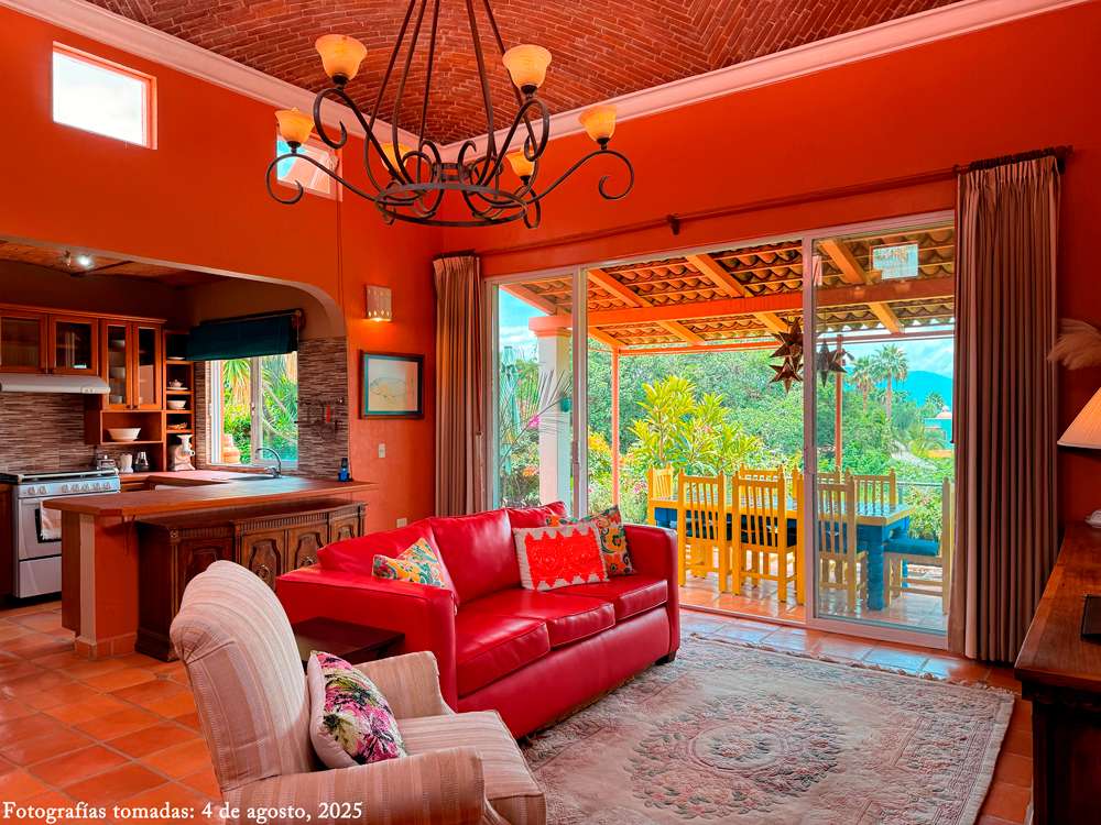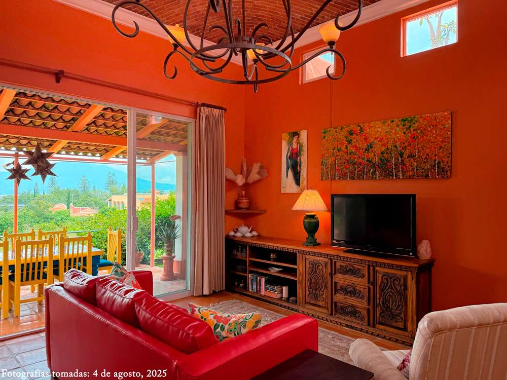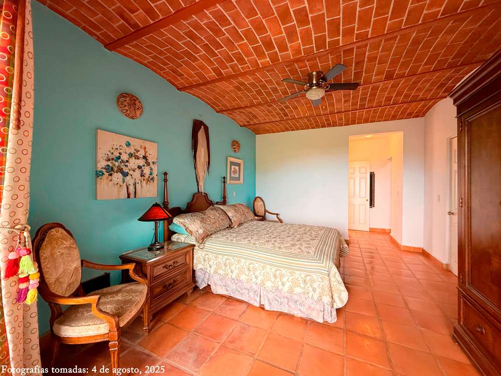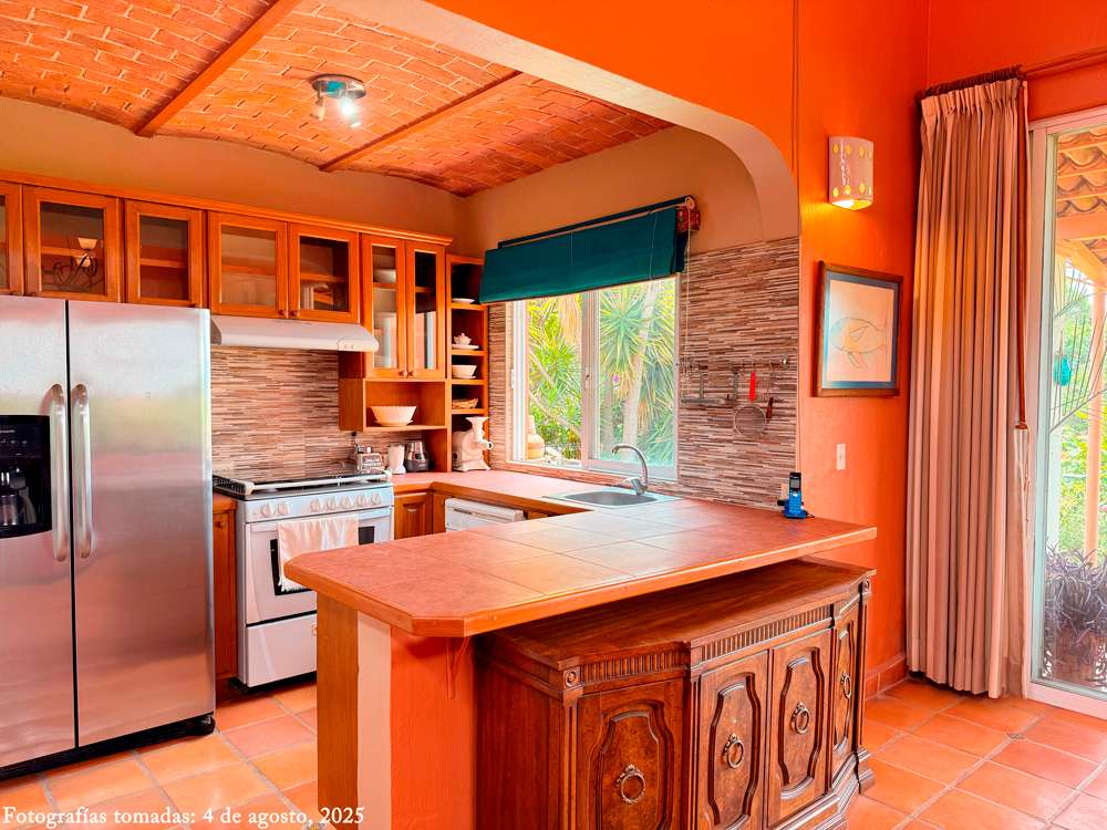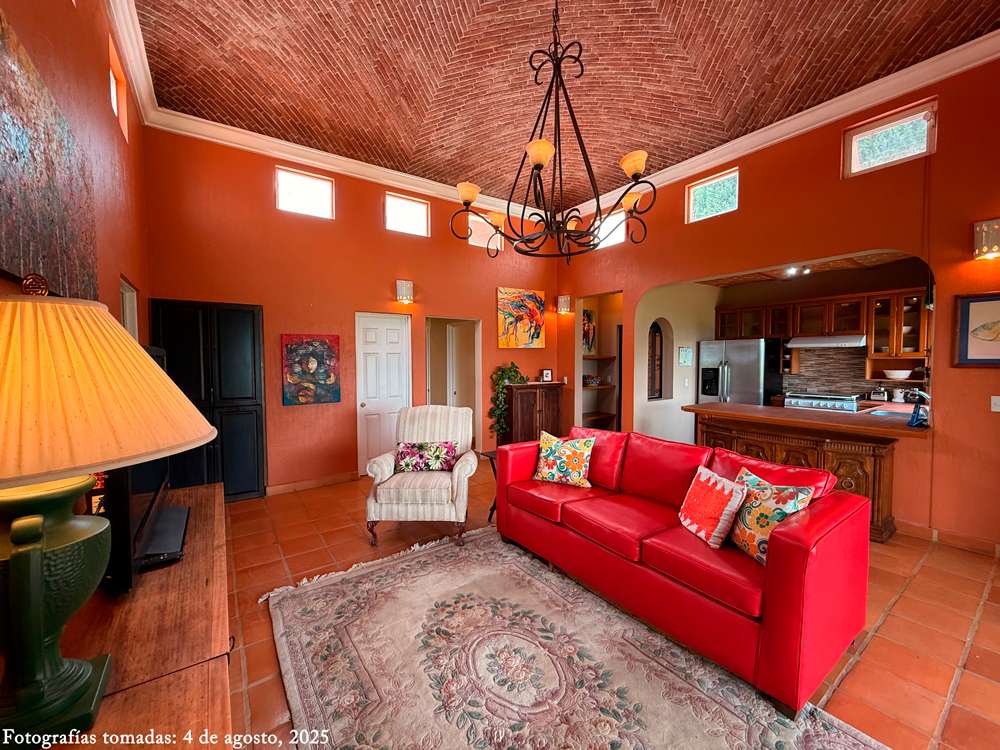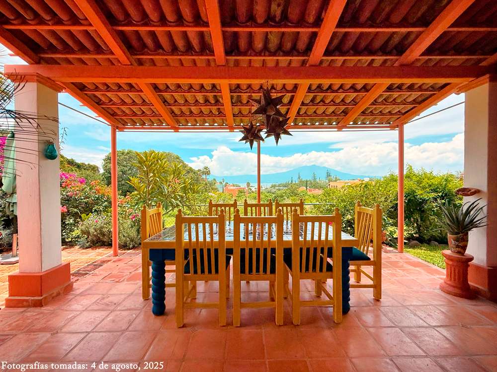 Step inside to find stunning bĂłveda ceilings in every room that bring warm, rustic character to their spaces. The open kitchen overlooks the lush garden and offers a stunning backdrop of Lake Chapala, creating a peaceful and picturesque cooking and dining experience.