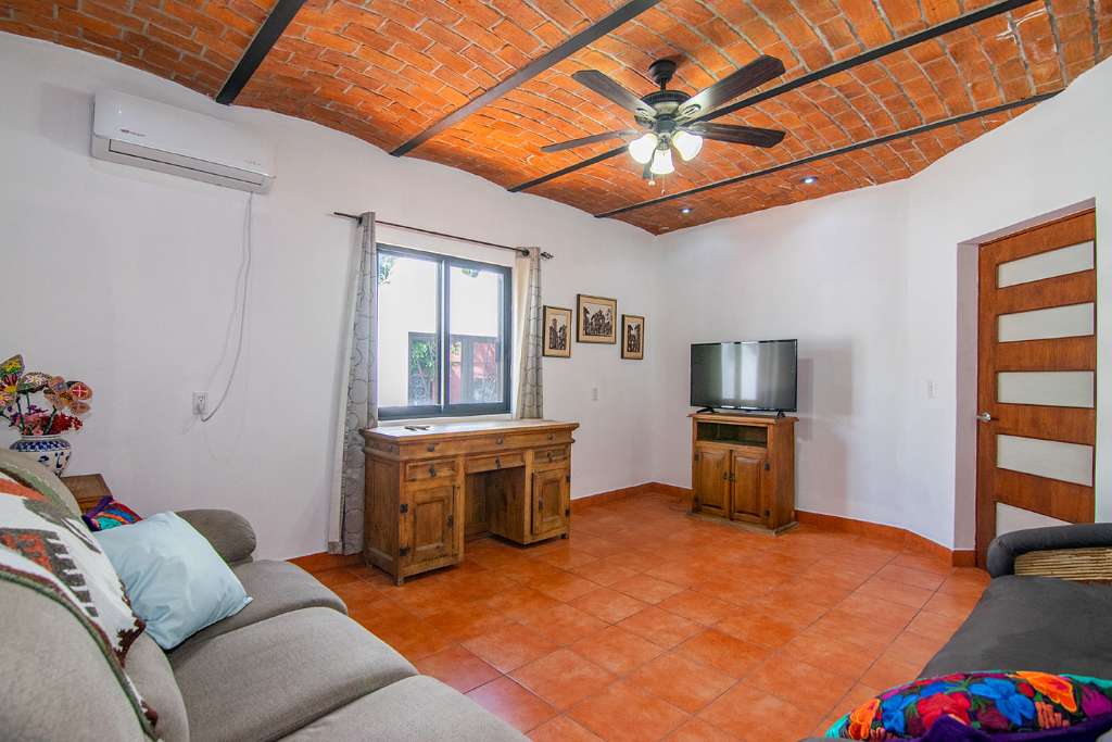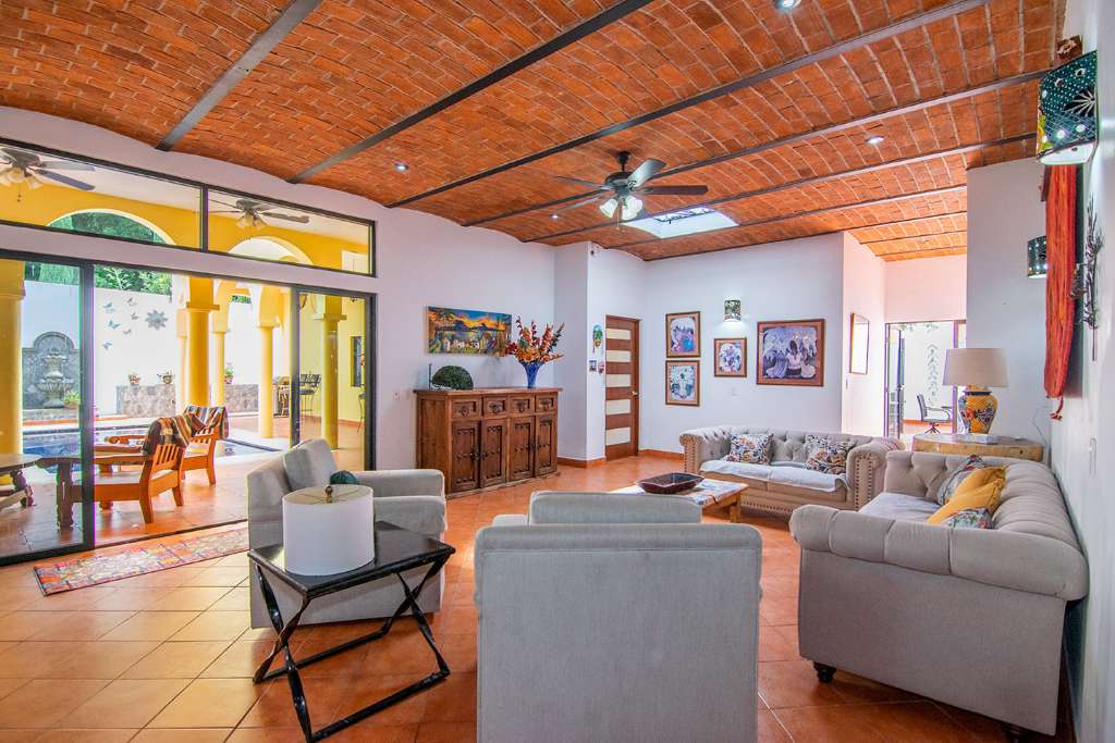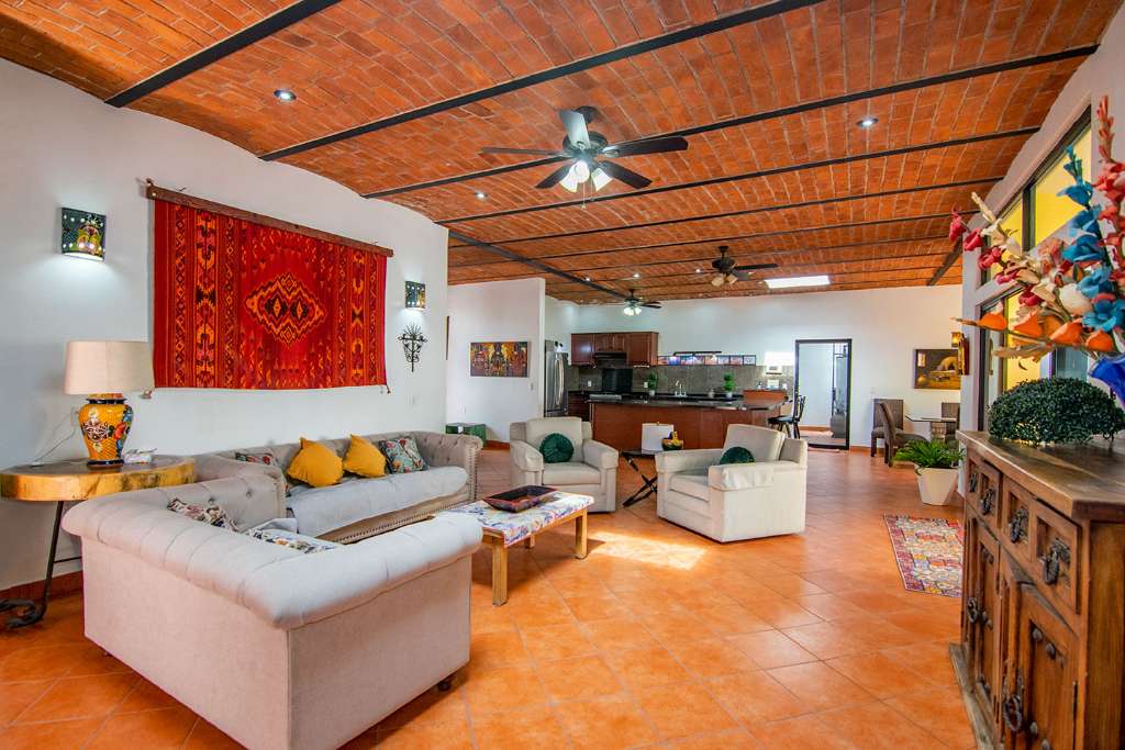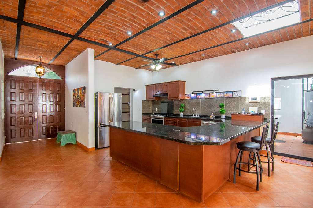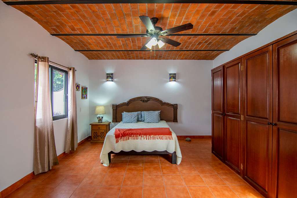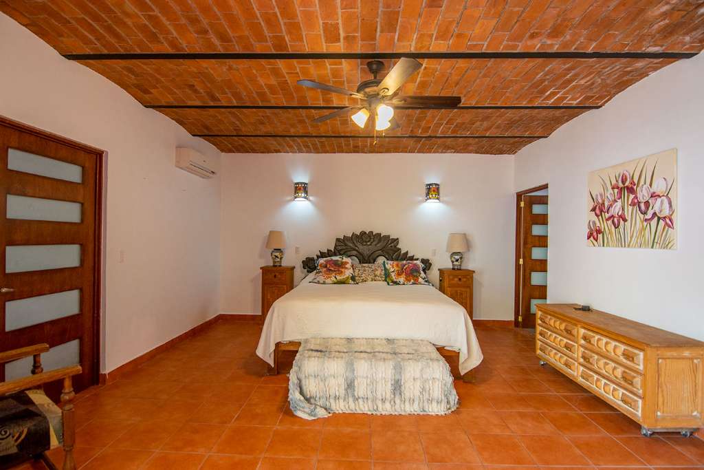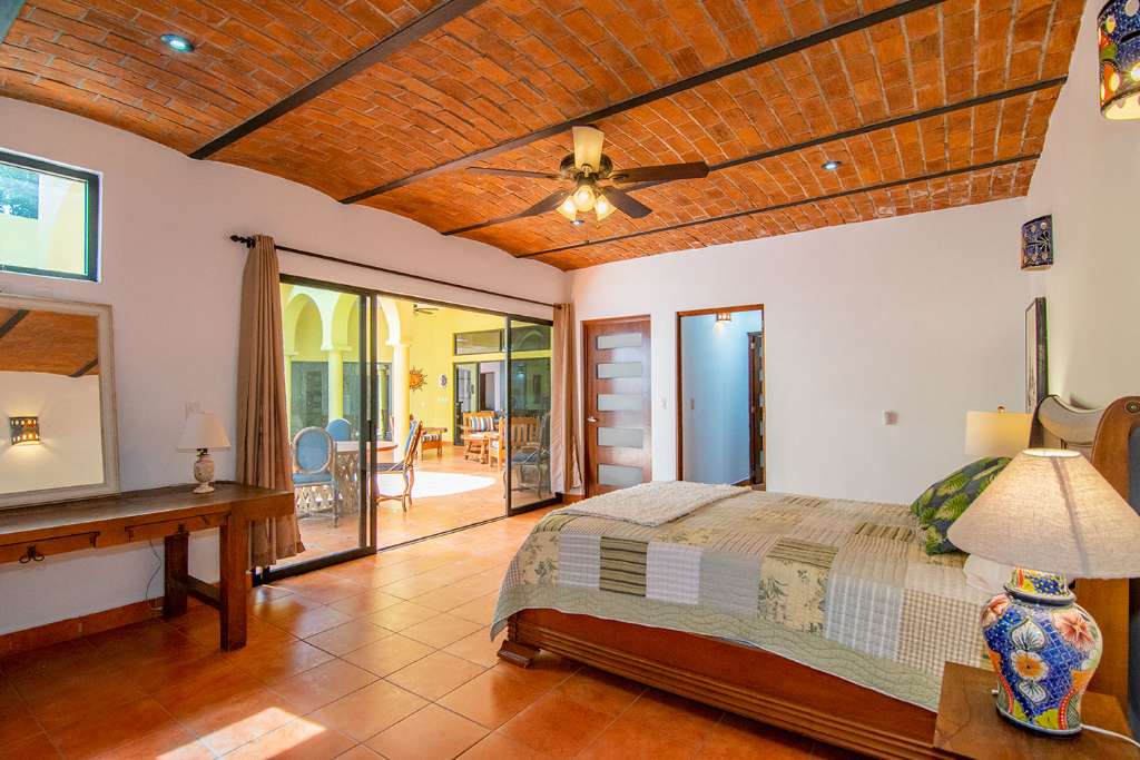 In the open-concept space, there are multiple access points to the covered terrace. And on the opposite side of the house from the guest rooms is the principal bedroom. It has direct access to the terrance. It also boasts a walk-in closet and en-suite full bath.