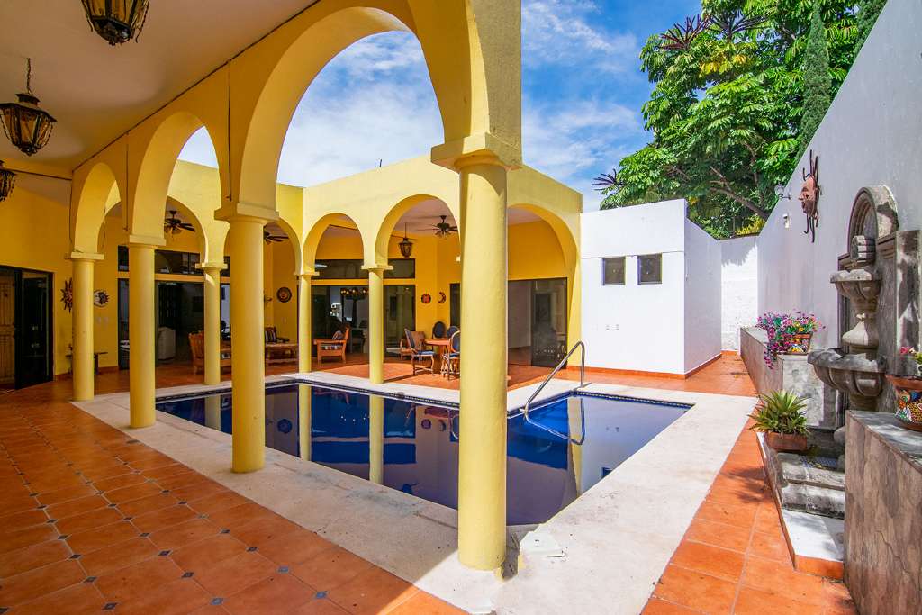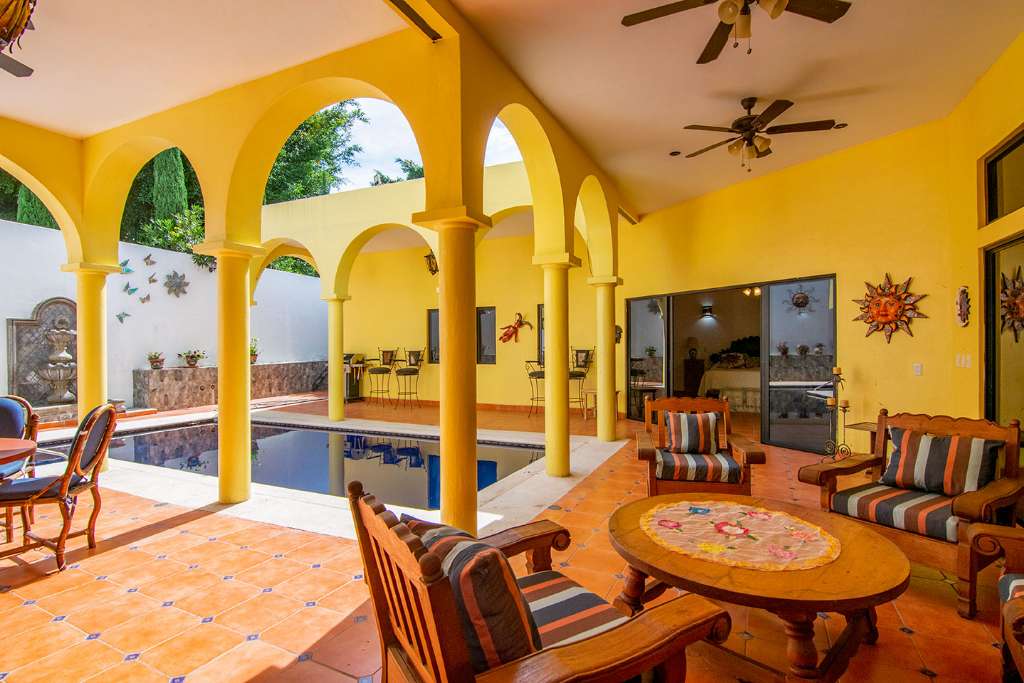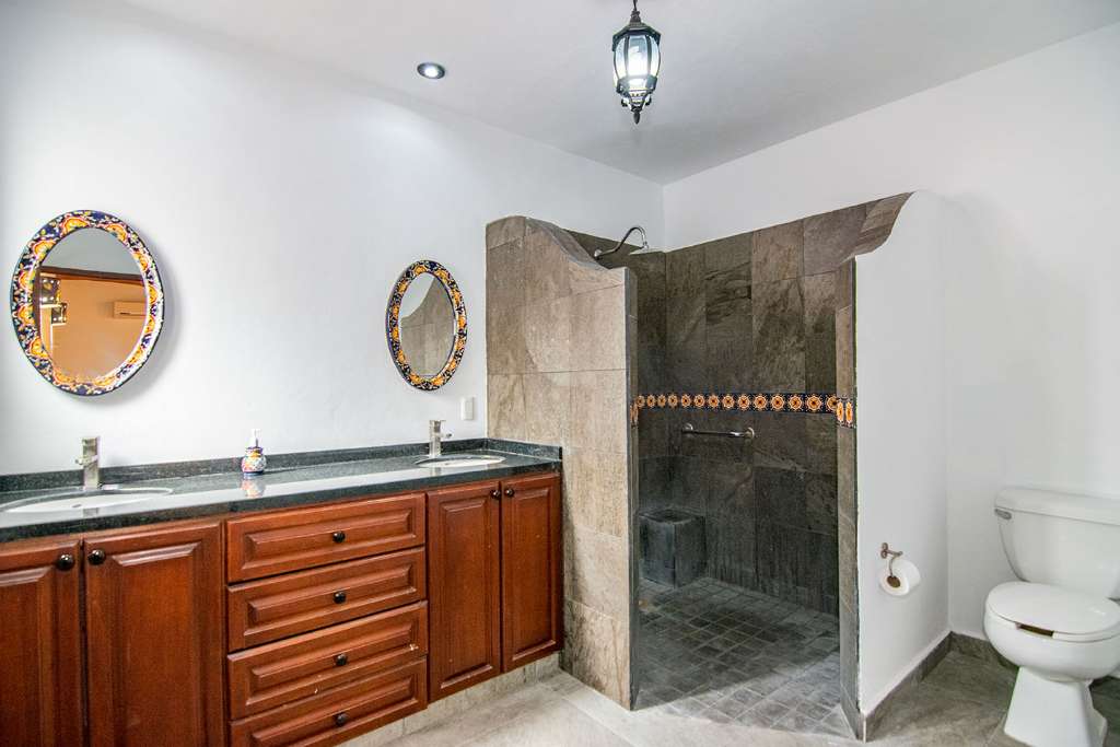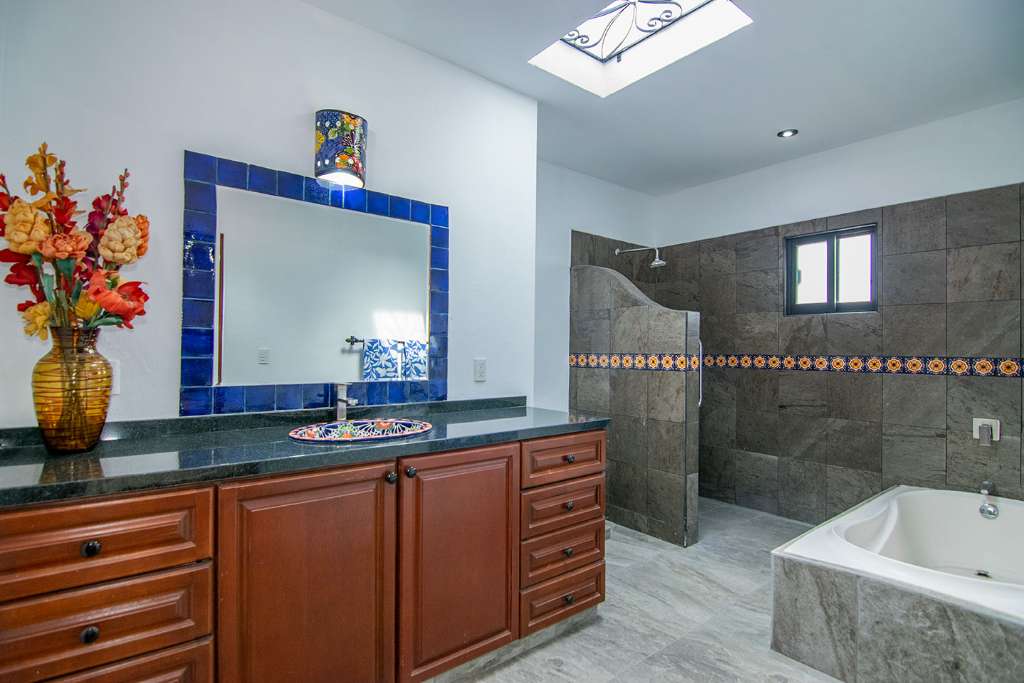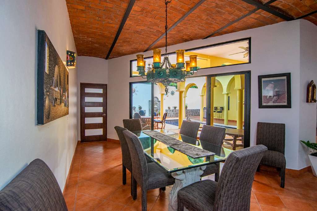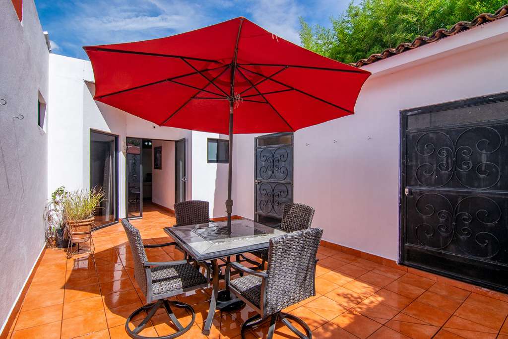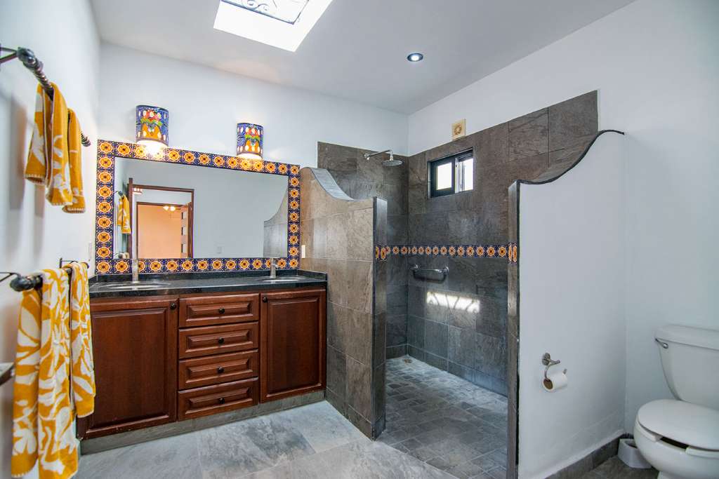 In the open-concept space, there are multiple access points to the covered terrace. And on the opposite side of the house from the guest rooms is the principal bedroom. It has direct access to the terrance. It also boasts a walk-in closet and en-suite full bath.
