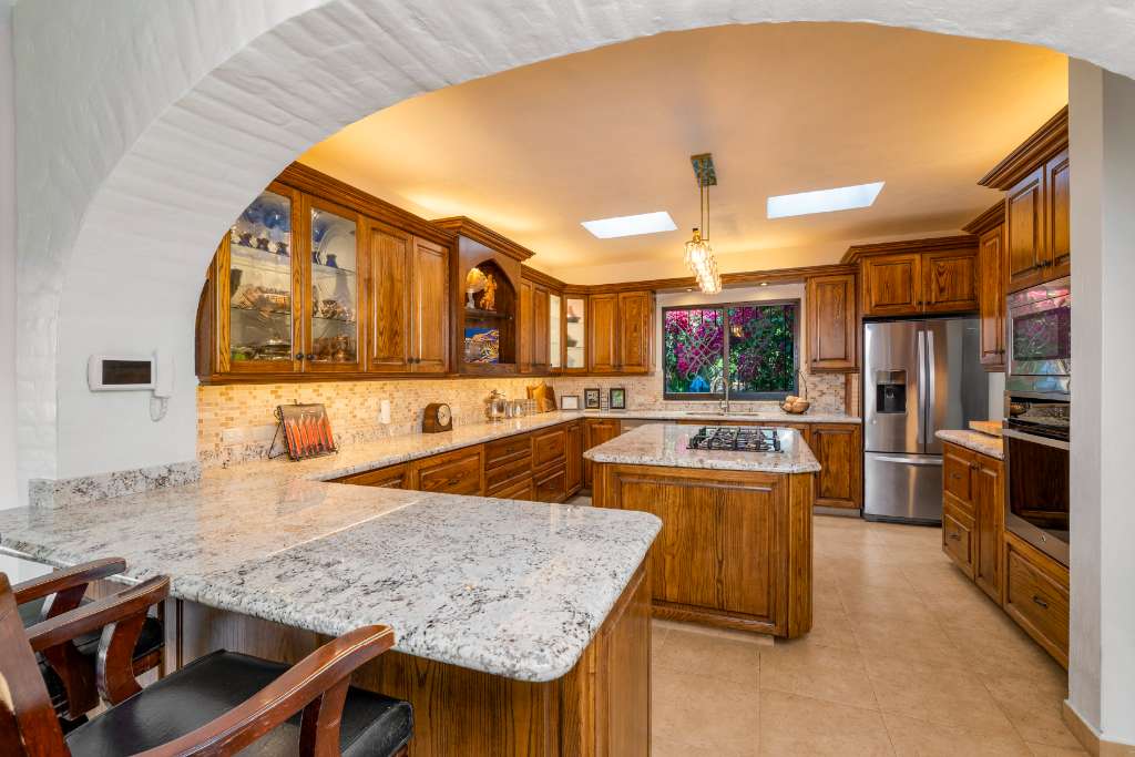 Set on a meticulously manicured 8,547 sq. ft. lot, this residence blends modern luxury with timeless Mexican charm. The chef’s kitchen features solid wood cabinetry, premium appliances, and generous workspace, ideal for entertaining and everyday living.