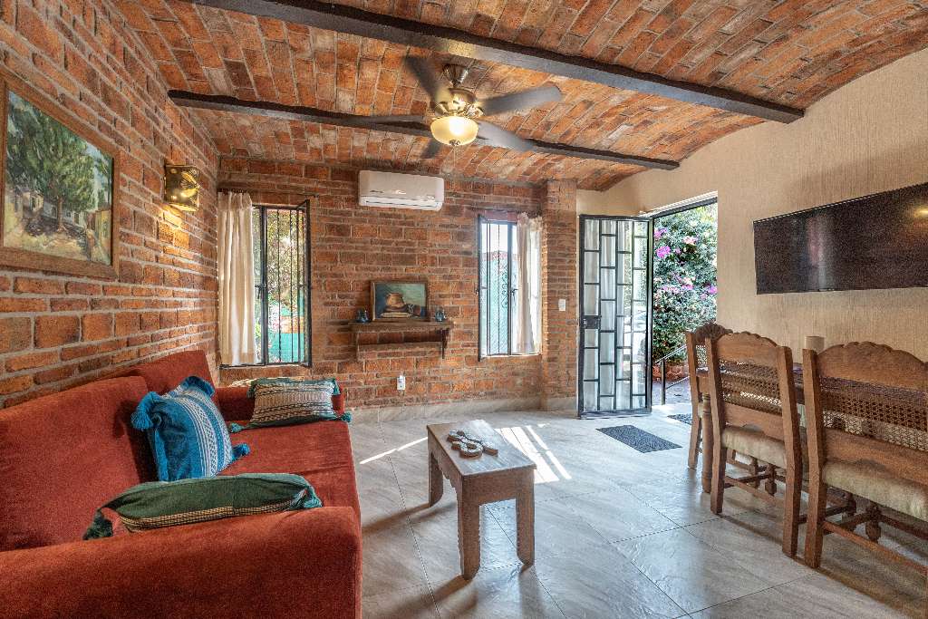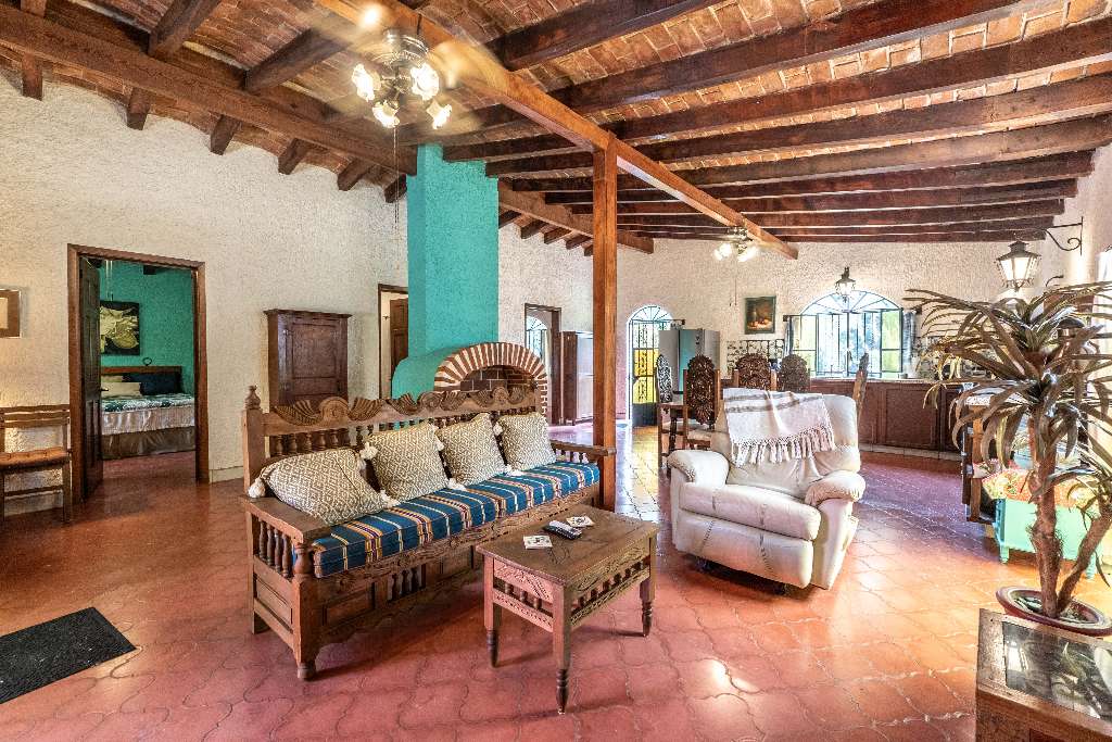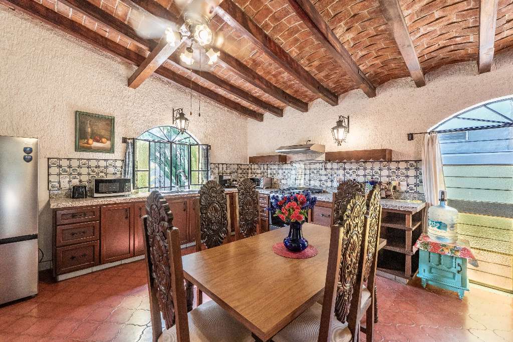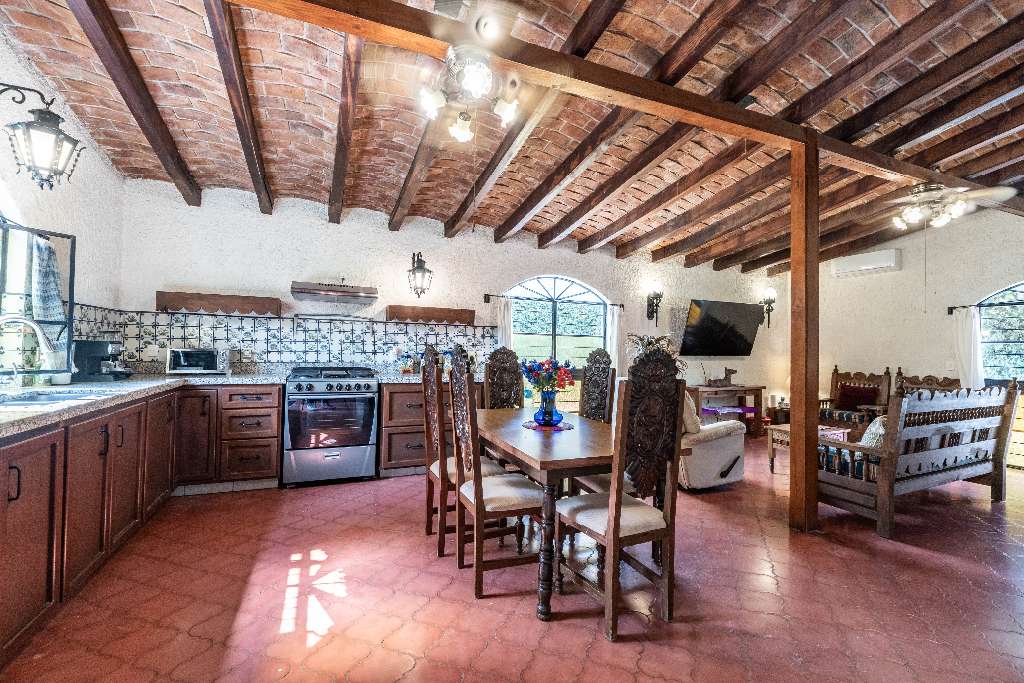 Designed in a traditional Mexican style, the main house features an open-concept kitchen, living, and dining area, filled with natural light and warm accents. Solid wood finishes and a beautiful central fireplace create a cozy and inviting atmosphere perfect for entertaining or unwinding.
