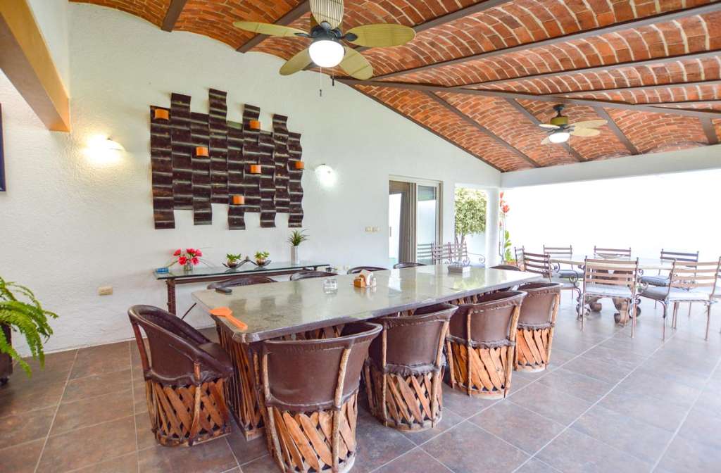 There is a covered garage for 4 cars with an electric gate, a large patio with potential to build a swimming pool, and partial mountain views. The solid construction also allows the possibility of adding a second level.