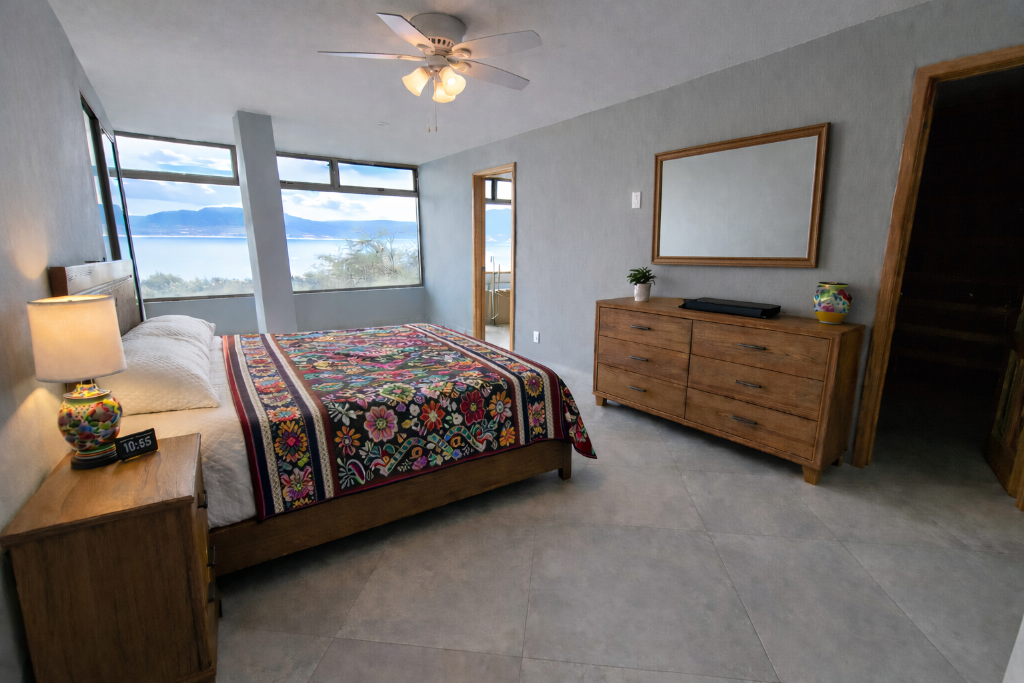 This spacious three-bedroom, three-bathroom condominium is located above the Rancho del Oro area of West Ajijic, Jalisco, Mexico, within a newly remodeled four-unit condominium building.