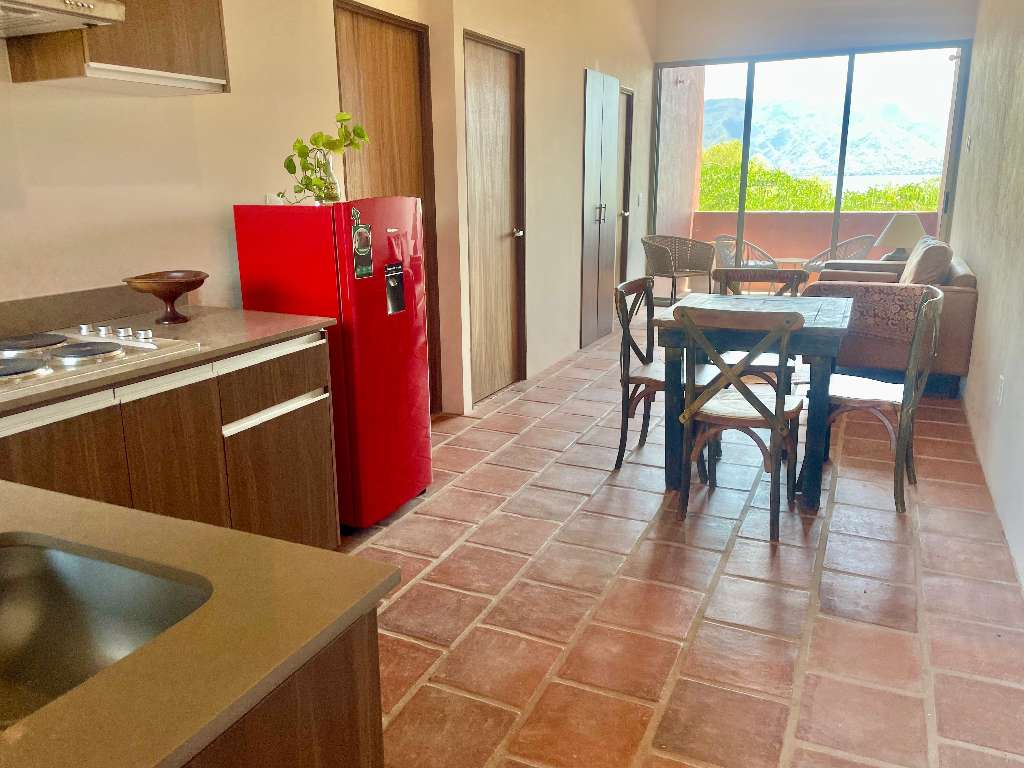 Live the life you've always dreamed of! Apartment 202, located on the second floor with South-North orientation, offers you a space ready to enjoy in front of Lake Chapala. This 57 m² apartment is sold fully furnished, including 2 bedrooms and 2 bathrooms, so you only have to worry about enjoying yourself. Its privileged location and orientation guarantee natural light and comfort. In addition, you can enjoy the amenities of the condominium, such as the pool, green areas, and sunbathing decks. Don't miss the opportunity to have your ideal home in San Cristóbal Zapotitlán!