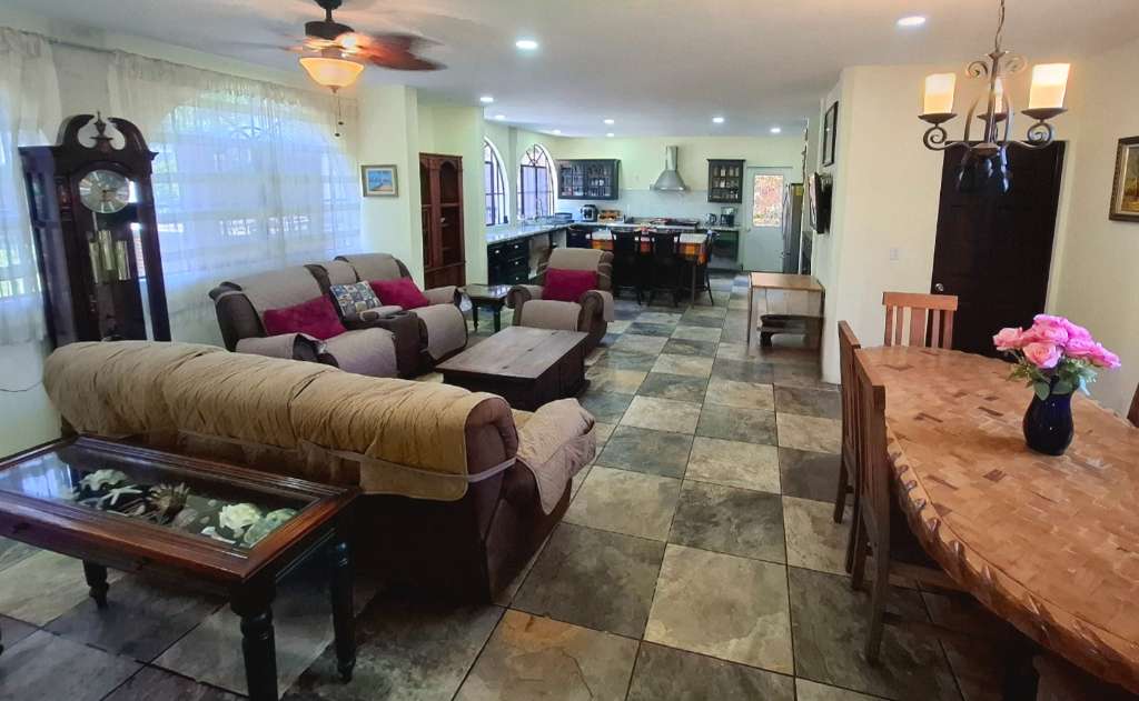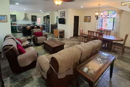 1. Main house The main house features 3 bedrooms. 2 full bathrooms and 2 half bathrooms, an office, and large open living-dining-kitchen area - all on one level. Upstairs is a huge family room. Attached to the main house is a workshop space. with roof mirador.