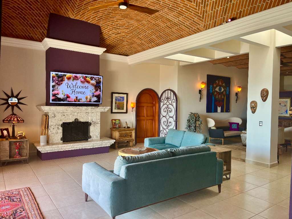 The home further boasts two gas fireplaces, multiple skylights and multiple air conditioning units.
